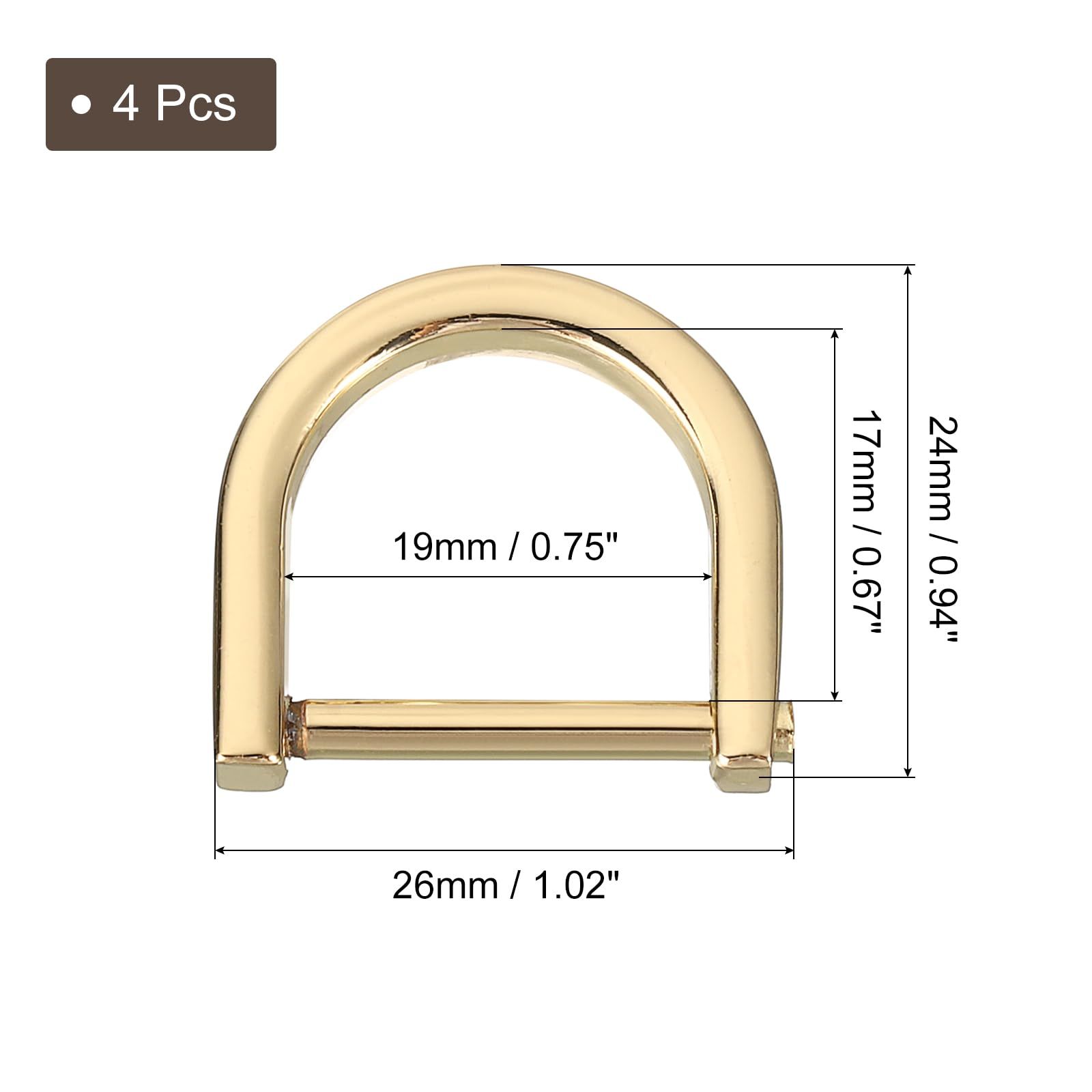 [uxcell] Dリングねじ込みシャックル バックル 金色 財布DIYレザークラフトキーチェーン用 0.75インチ亜鉛合金ホースシューユーシェイプDリングバックル 4個セット