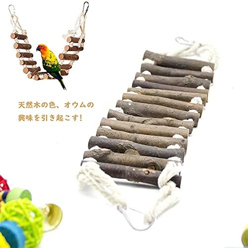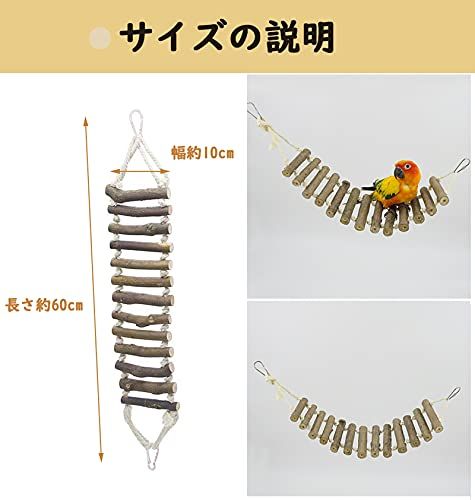 鳥 おもちゃ 止まり木 梯 はしご 吊り下げ ペット 鳥用品 インコ オウム おもちゃ 噛む玩具 遊び かご装飾 ケージ アクセサリー オウムスタンド スイン ストレス解消 知育玩具 (長い60×幅10cm)