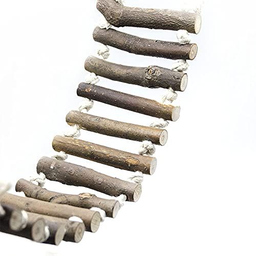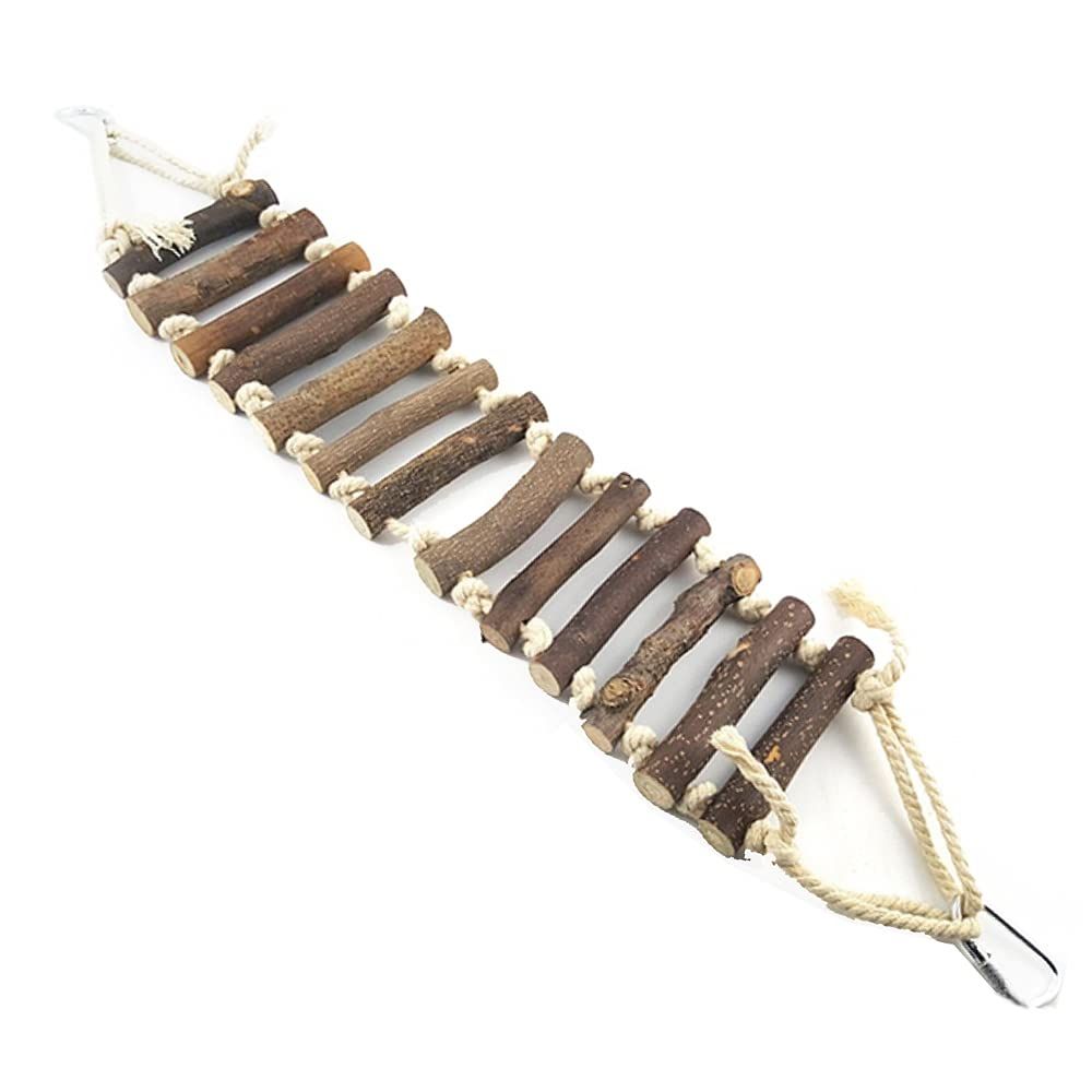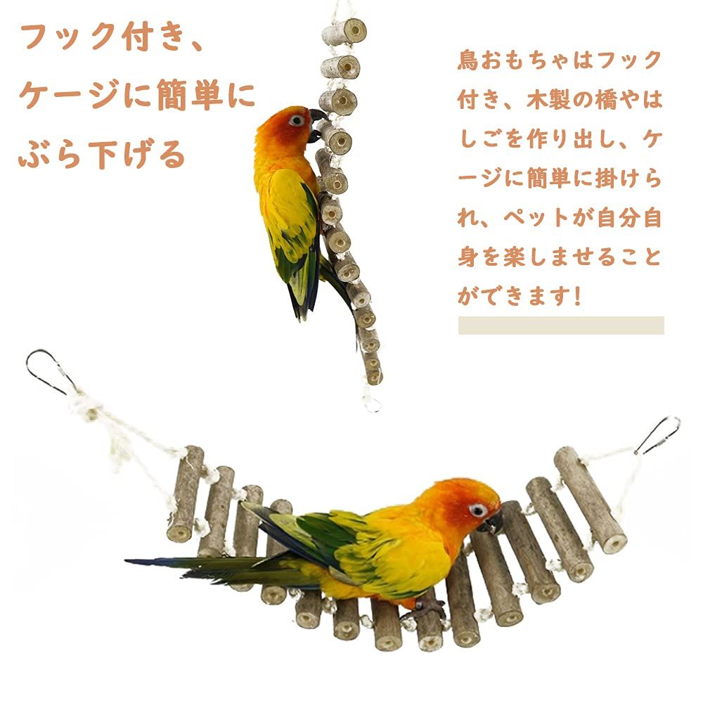 「フック付き、ケージに簡単にぶら下げる」鳥おもちゃはフック付き、木製の橋やはしごを作り出し、ケージに簡単に掛けられ、ペットが自分自身を楽しませることができます。それは小さな友達が遊んで登るのに理想的な玩具です。