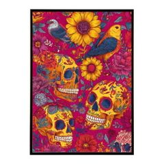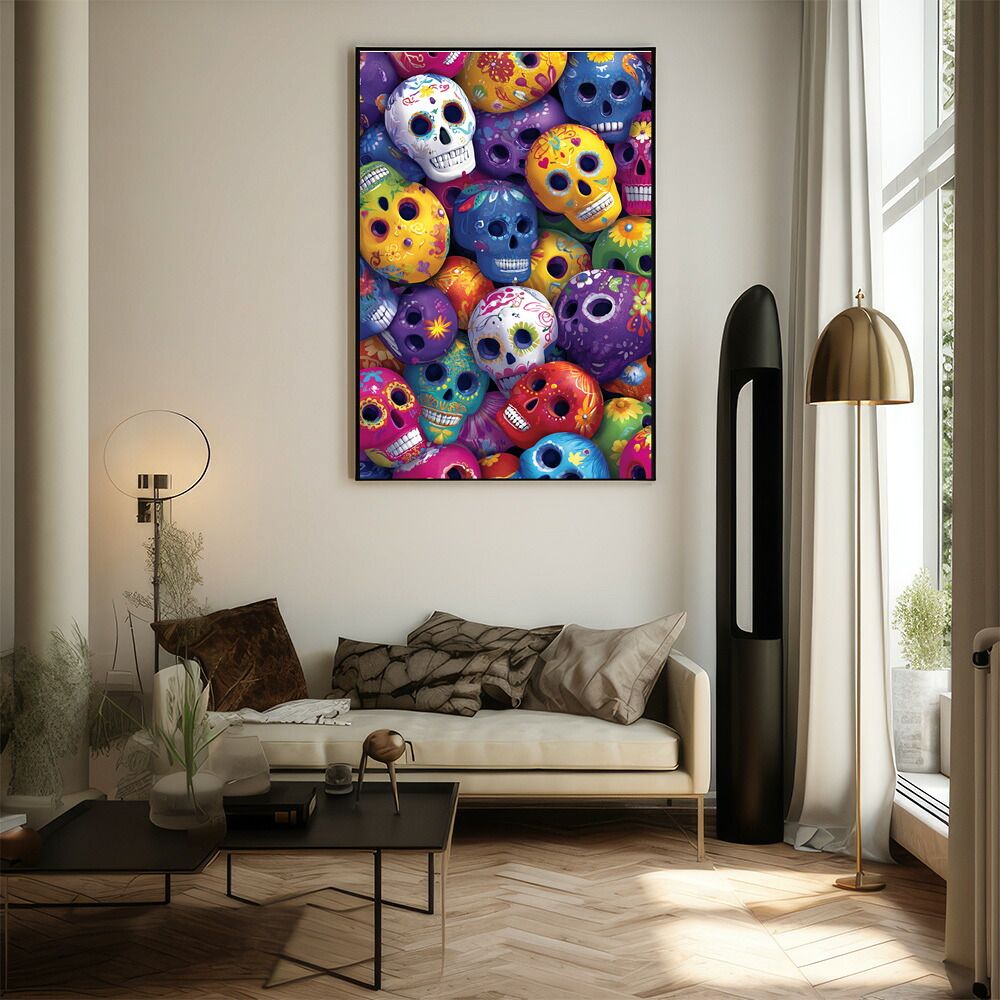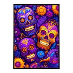 【A3サイズ(約30×42cm)】【lm-poster-5509】【フレーム付き】ドクロポスター シュガースカル カラフル 死者の日 アートポスター メキシコ デザイン 壁掛け ポップ ポスター イラスト