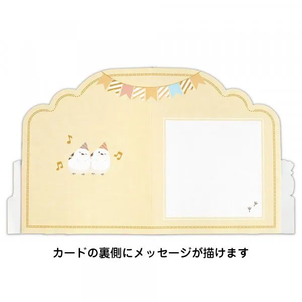 コーラスやプレゼントの準備をするシマエナガたちが愛らしいデザイン。簡単に立てて飾れる立体仕様で、金箔押し加工が特別な日を華やかに演出します。