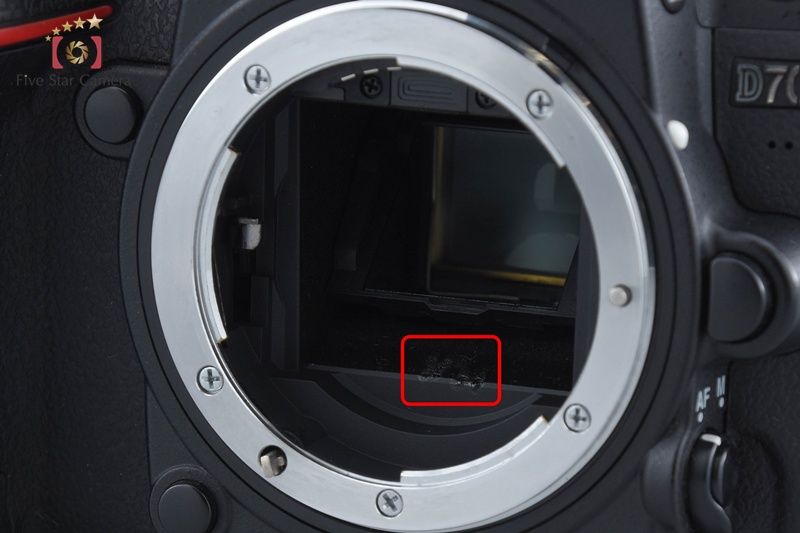 外装に使用感、薄い傷、磨耗によるテカリ、微小な塗装はがれ、背面液晶にわずかにスレが見られ、レンズ取り付け部の内側に接着剤跡がございます。