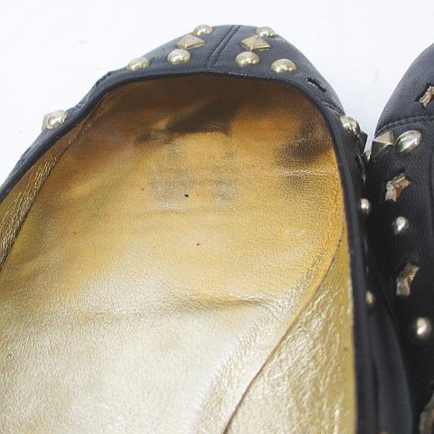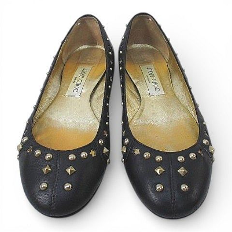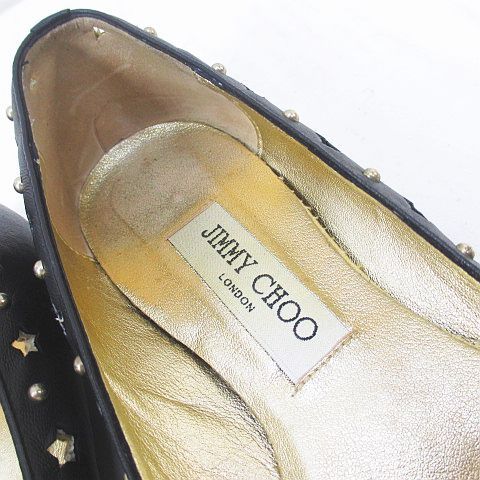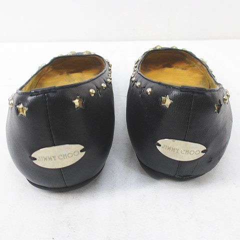 ジミーチュウ JIMMY CHOO バレエシューズ スタッズ カットワーク 38 ブラック 黒系 レザー イタリア製