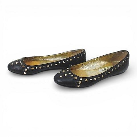 【商品名】ジミーチュウ JIMMY CHOO バレエシューズ スタッズ カットワーク 38 ブラック 黒系 レザー イタリア製