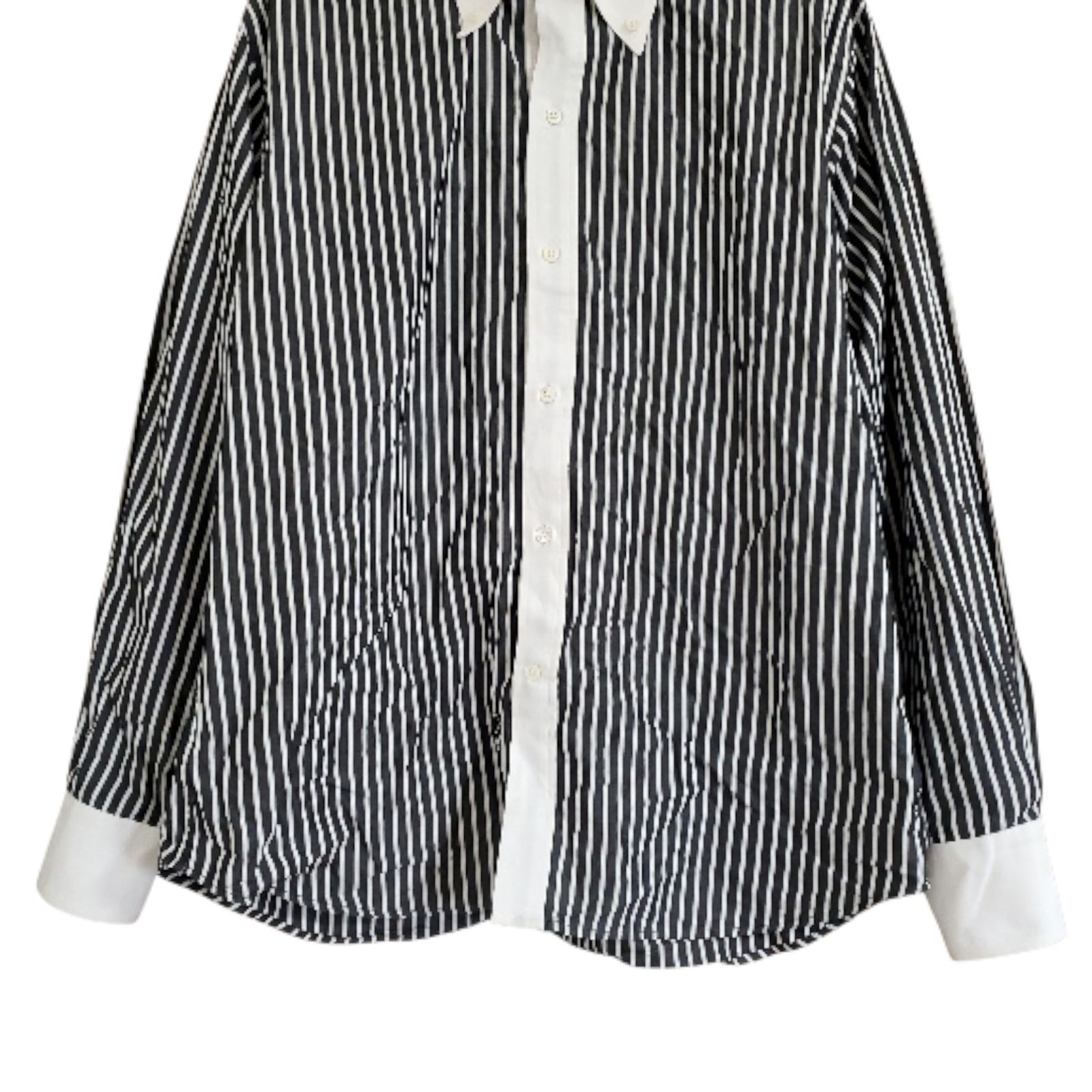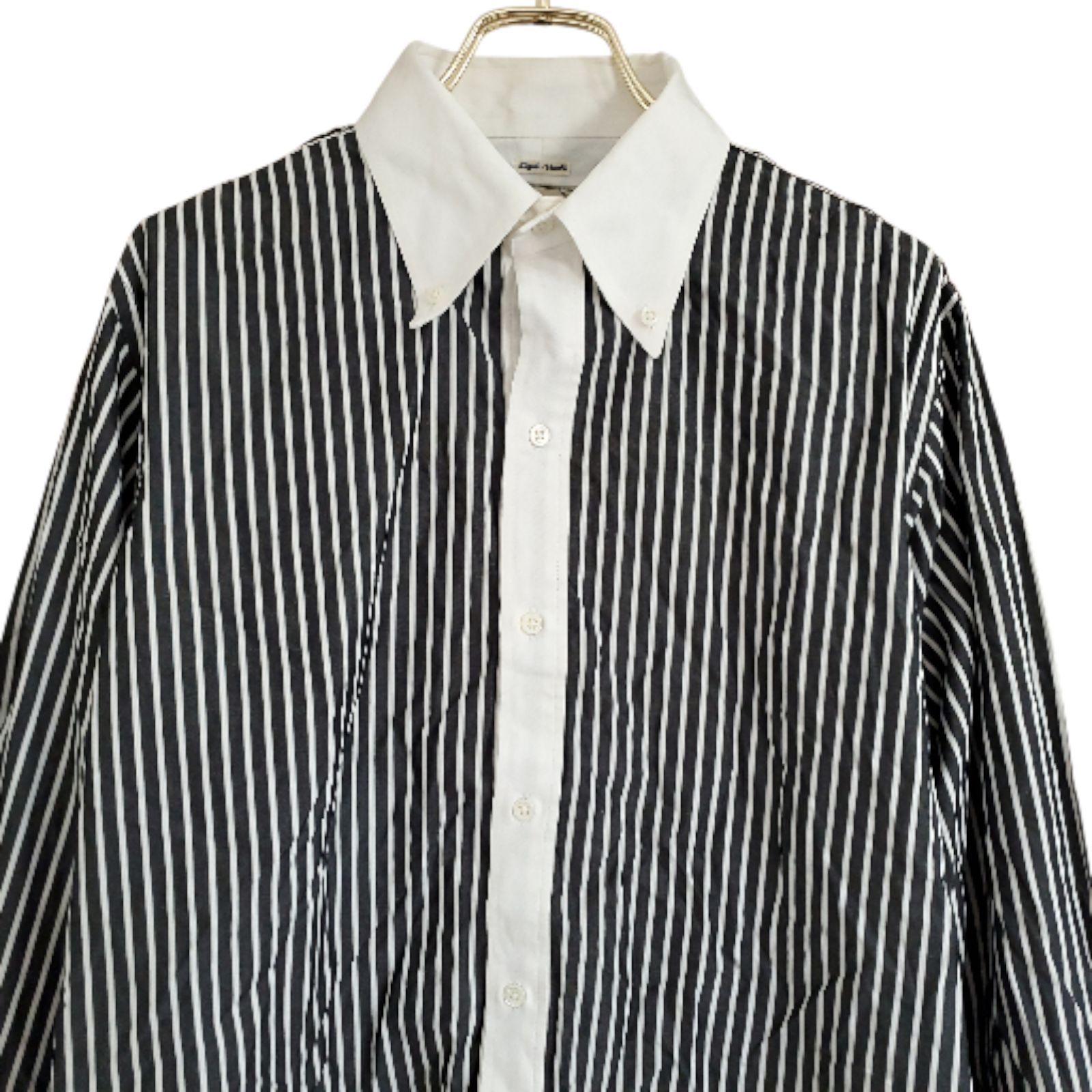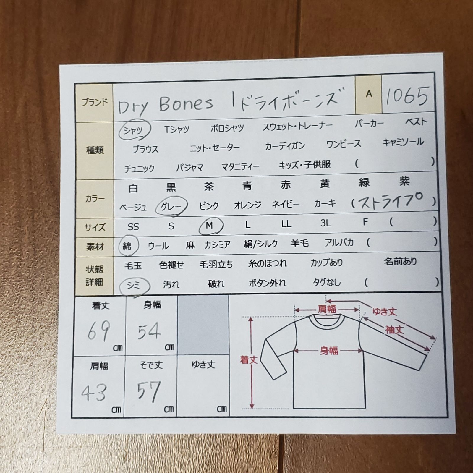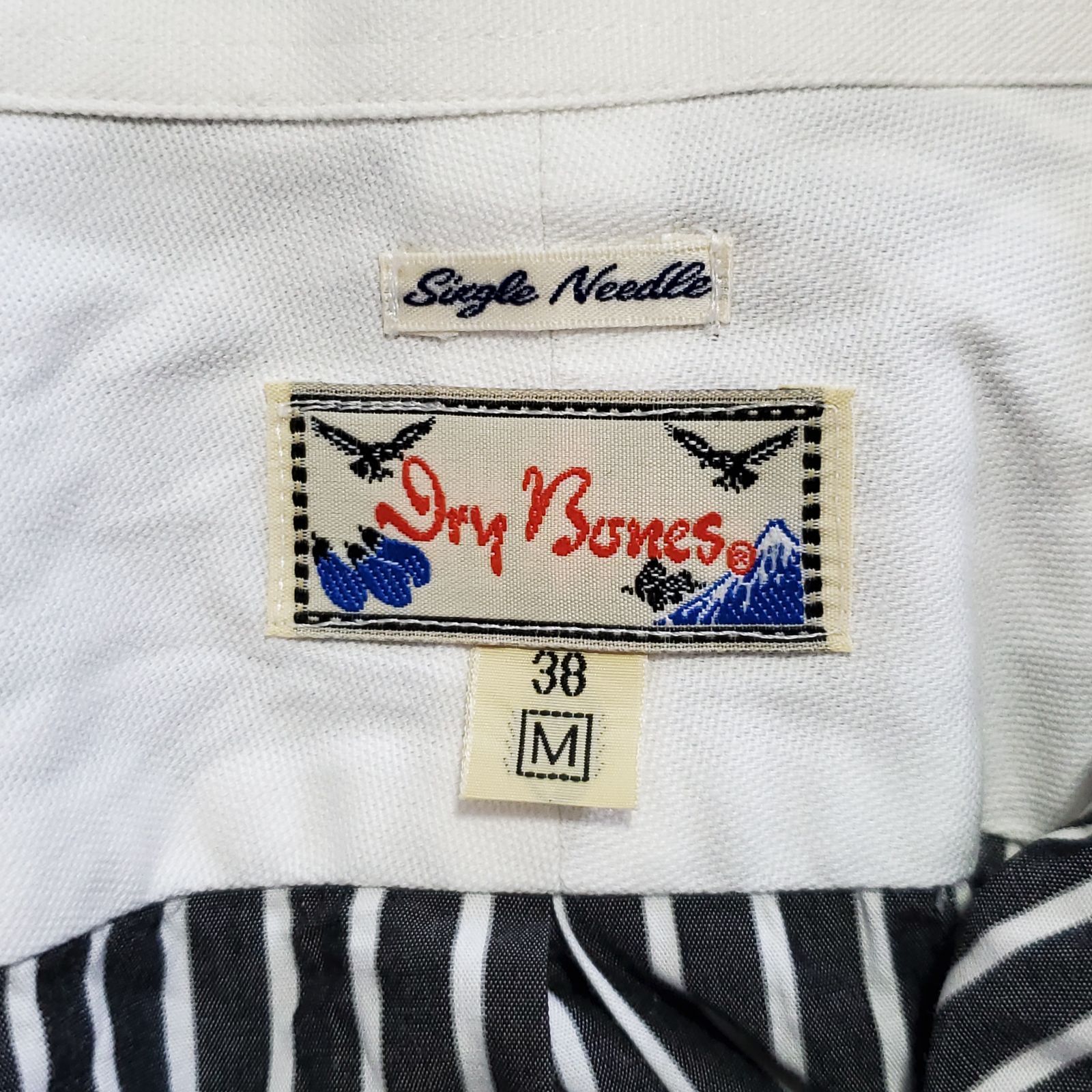 A1065 ドライボーンズ dry bones 長袖シャツ (M) ストライプ グレー 総柄 綿/コットン レギュラーカラー