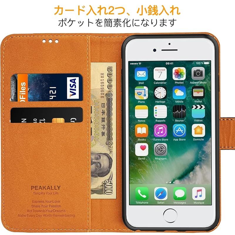 Peakally iPhone SE ケース 手帳型 iPhone se3/ iPhone se2/iPhone8/iPhone7/iPhone6s/6 手帳型スマホケース カード収納 財布型ケース 高級PUレザー マグネット式 スタンド機能 360度保護 1