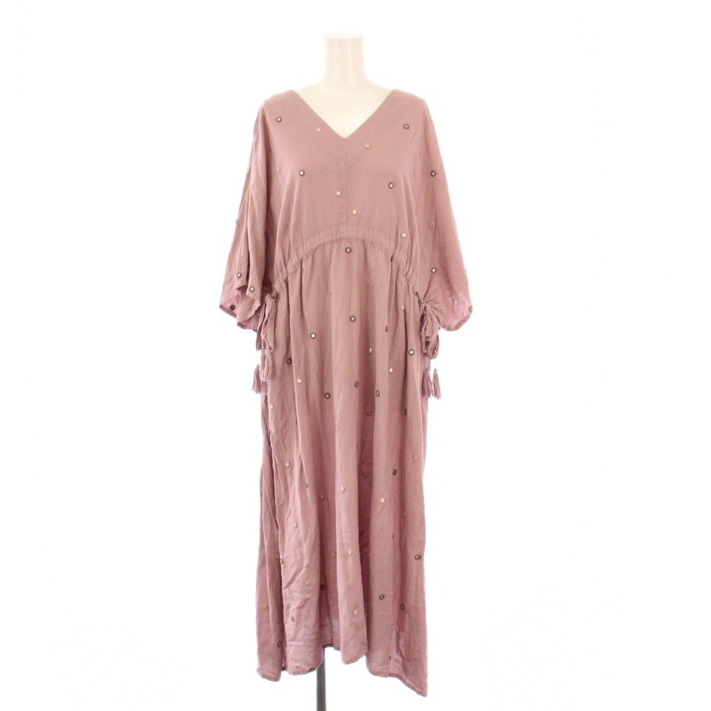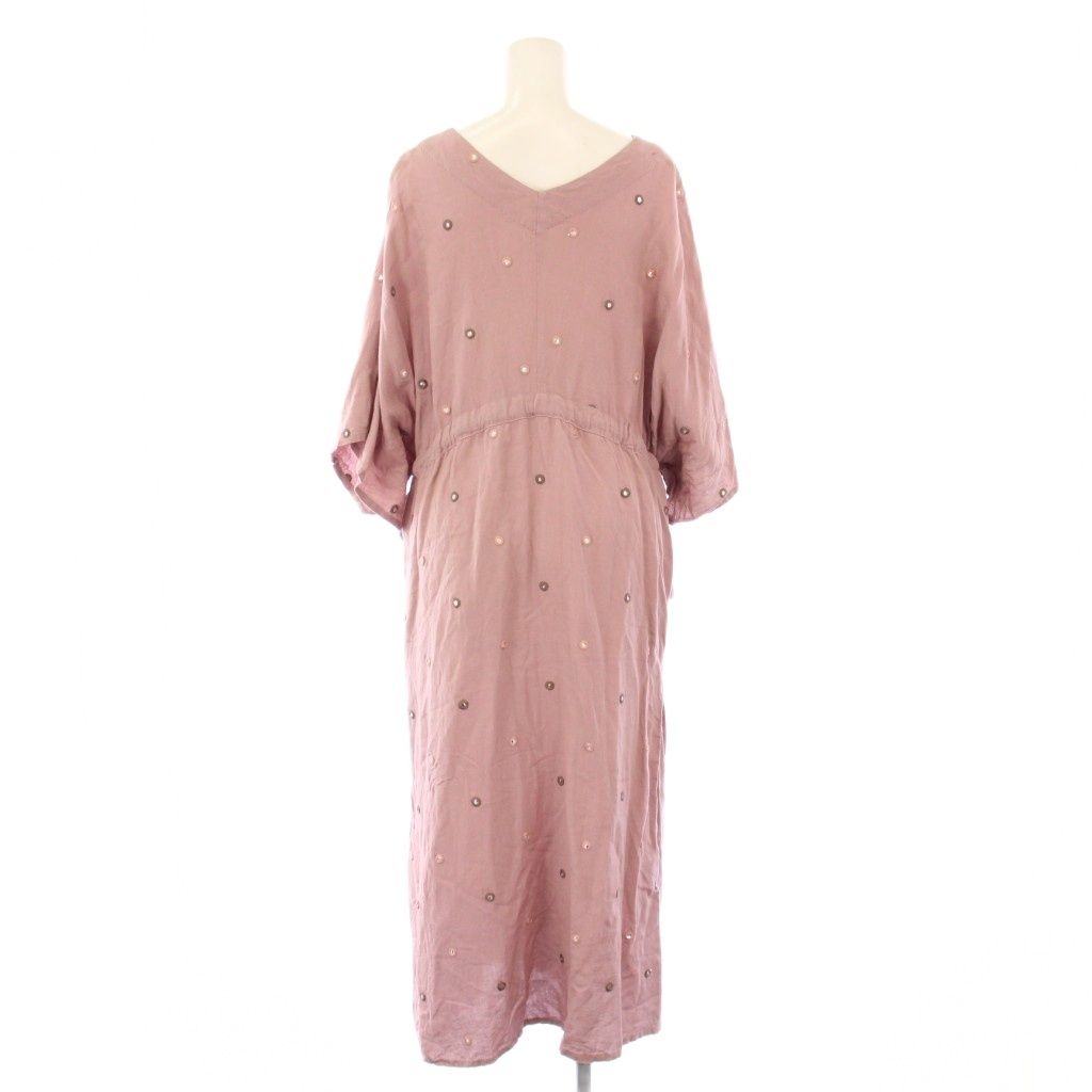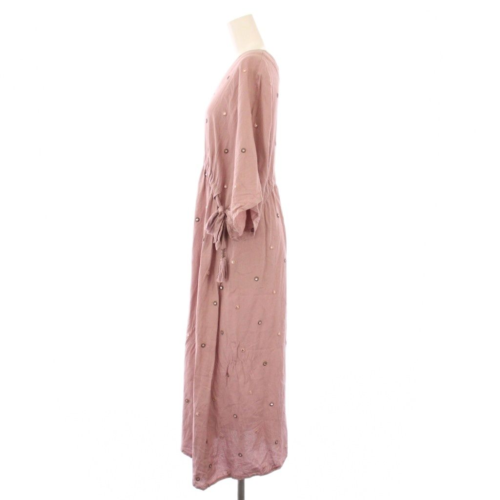 トラッゾドンナ Torrazzo Donna ワンピース マキシ ロング 七分袖 Vネック 装飾 刺繍 麻 リネン混 F ピンク /BB