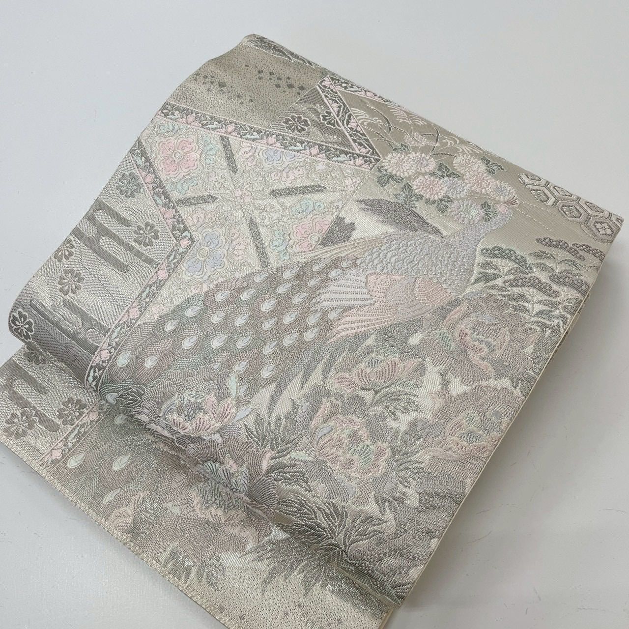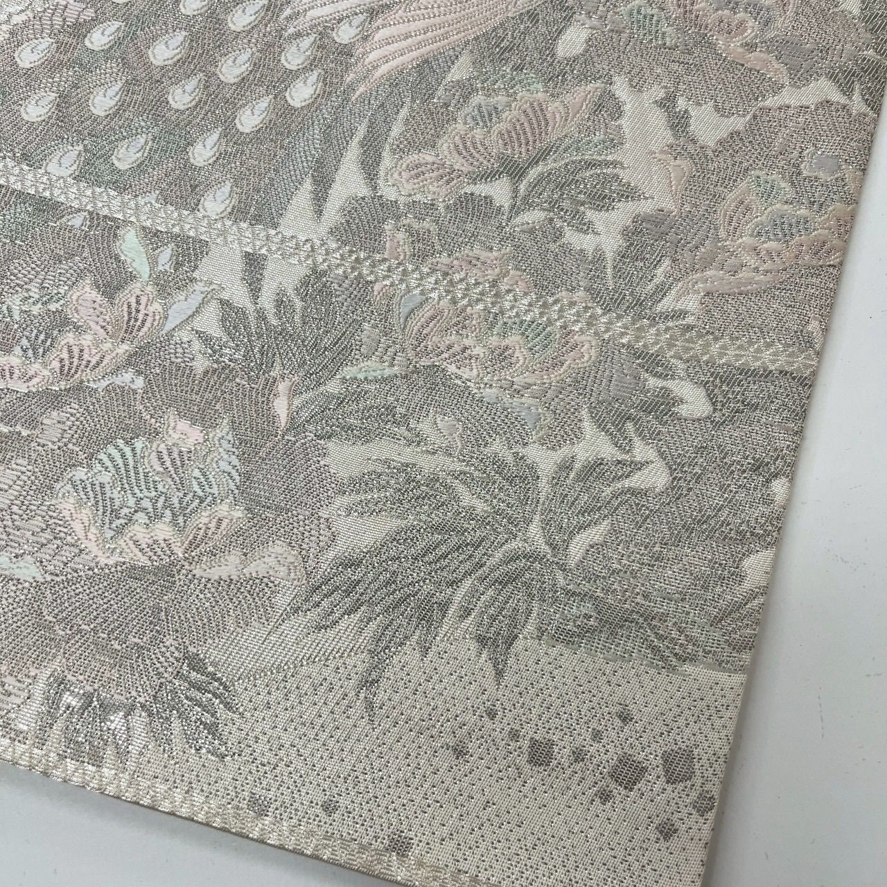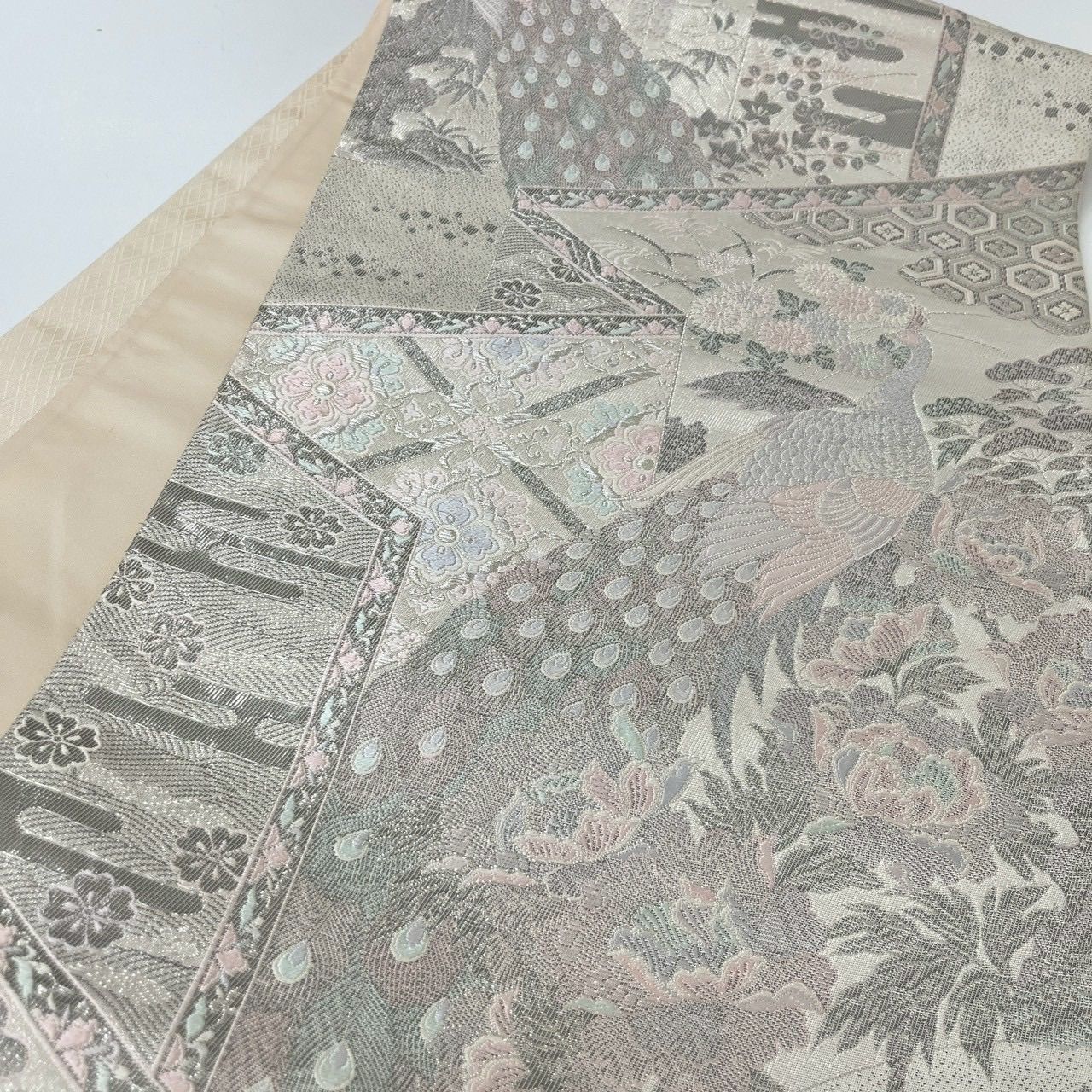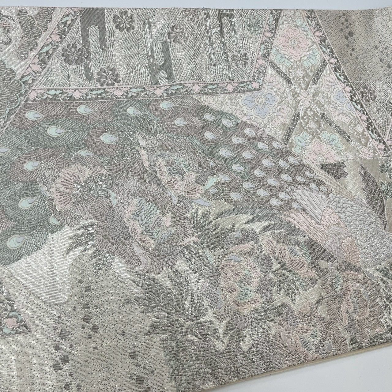袋帯 染錦展風孔雀文 プラチナ箔 孔雀 正絹 MA-3053