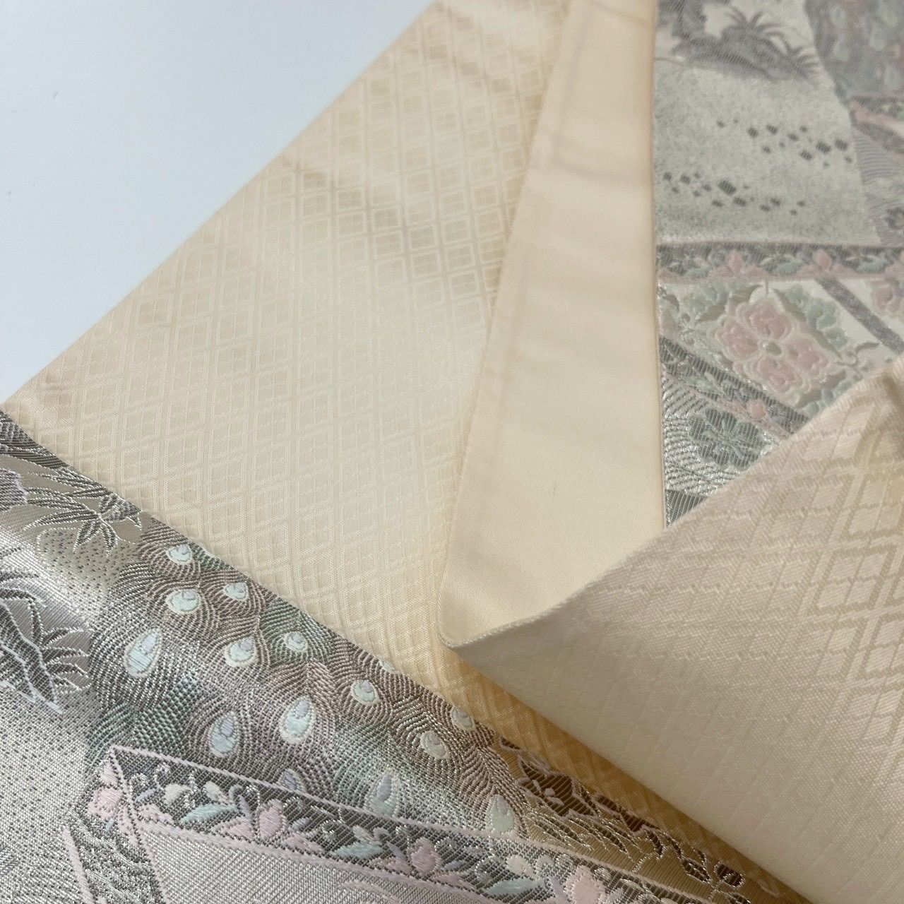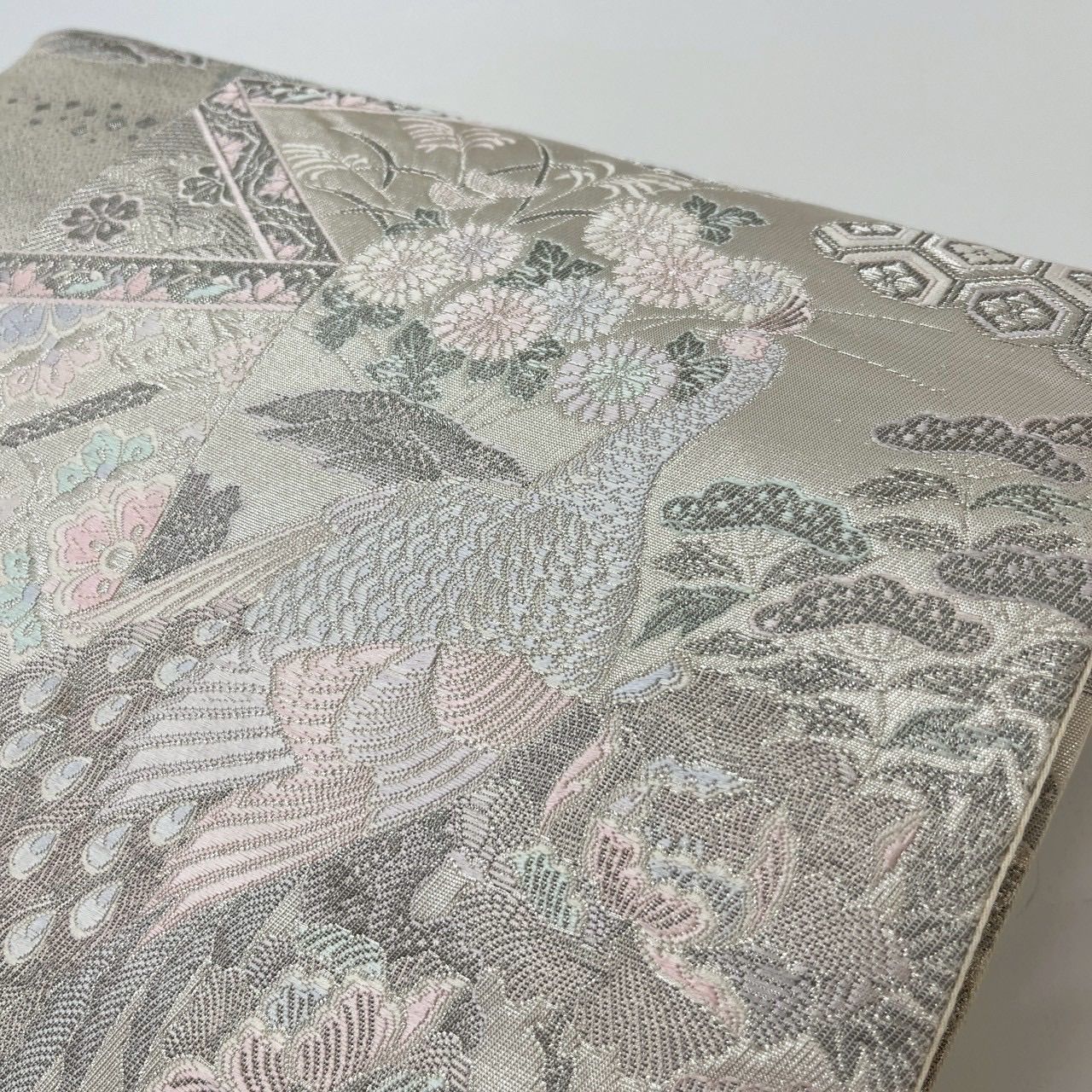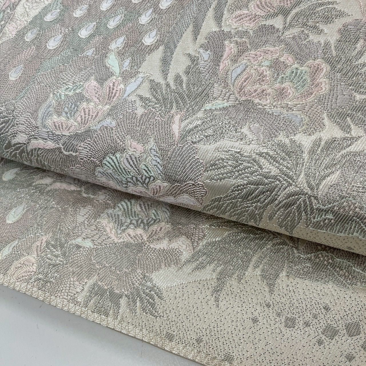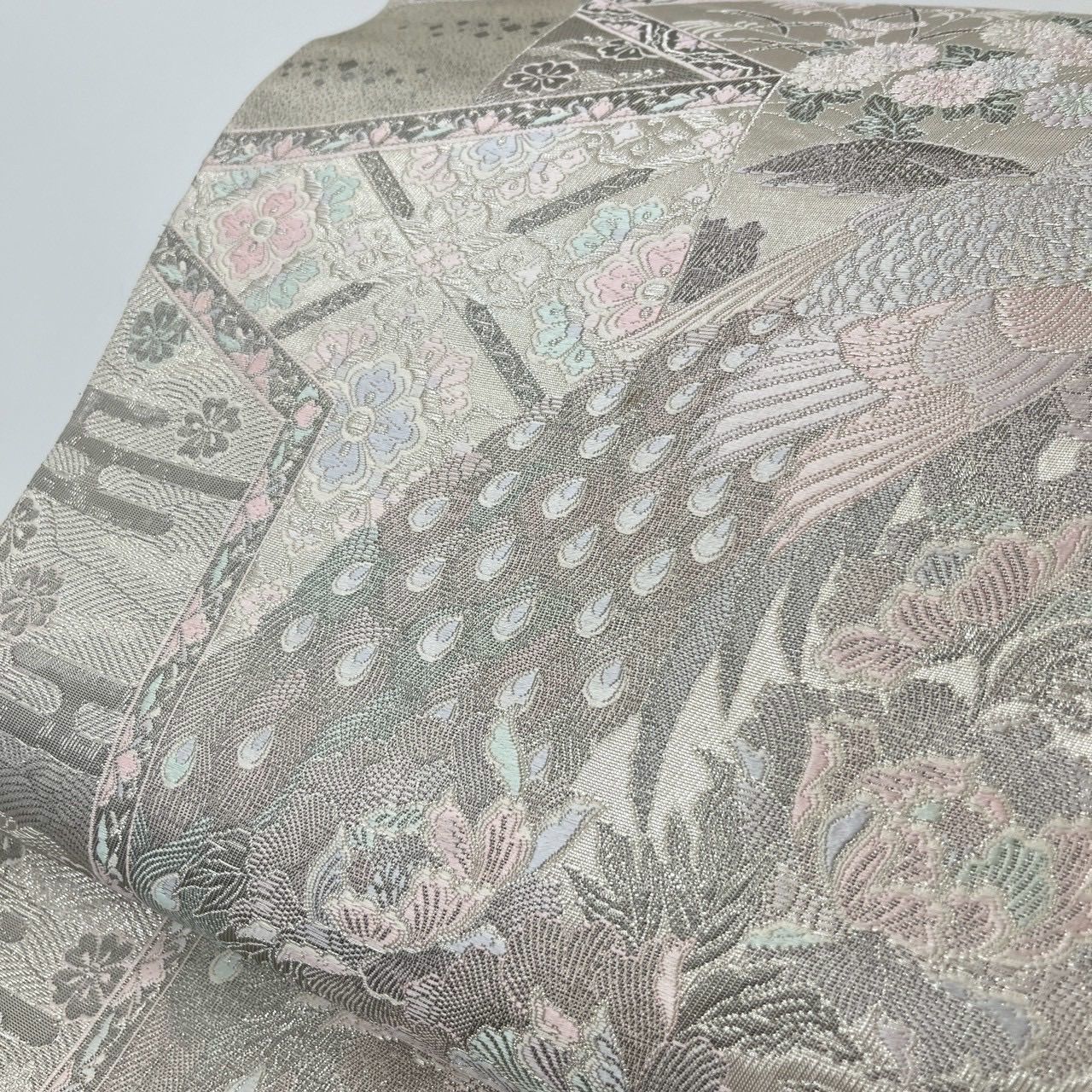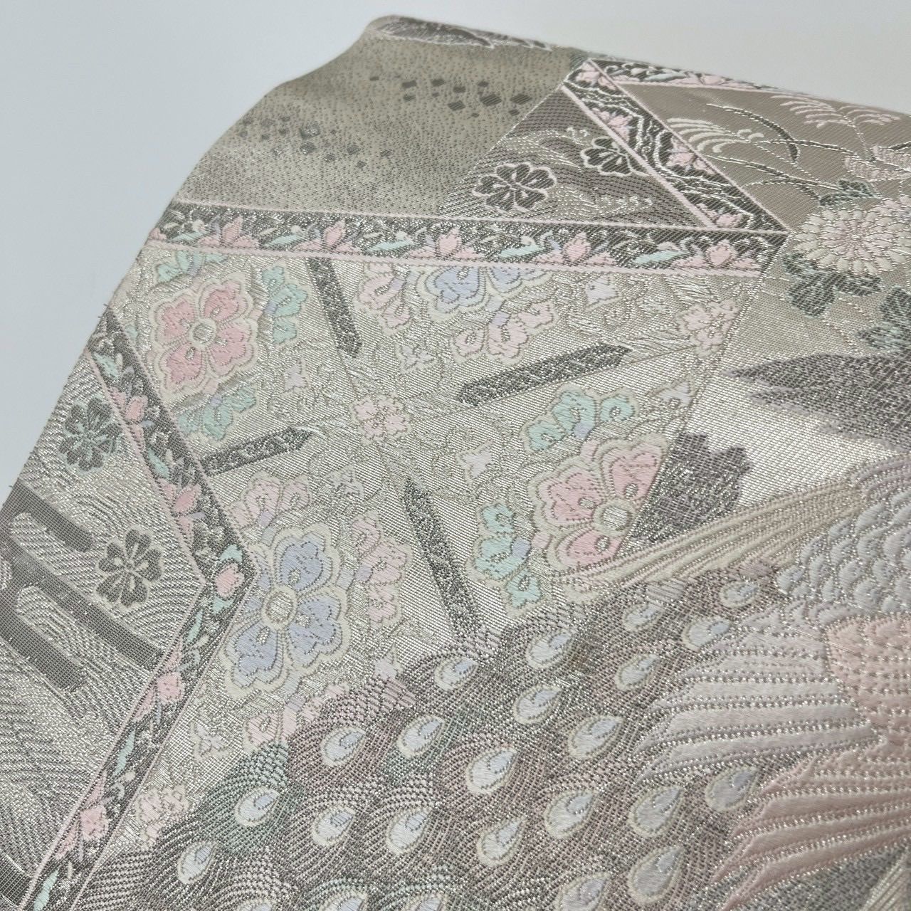 袋帯 染錦展風孔雀文 プラチナ箔 孔雀 正絹 MA-3053