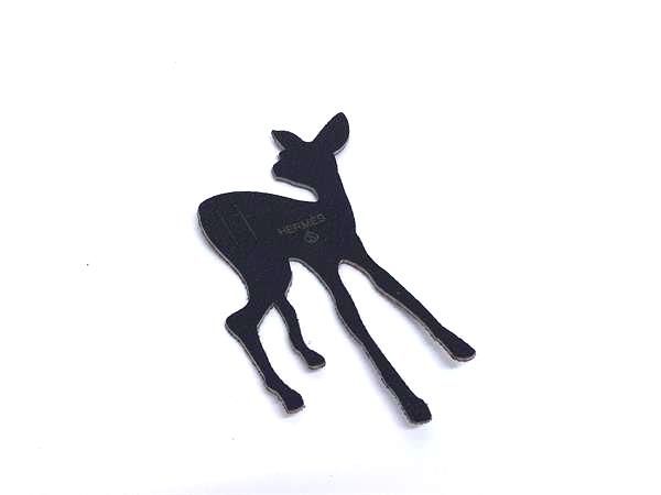 ■美品■ HERMES エルメス プティアッシュ レザー バンビ 鹿 キーホルダー チャーム ブラック系 DL9262