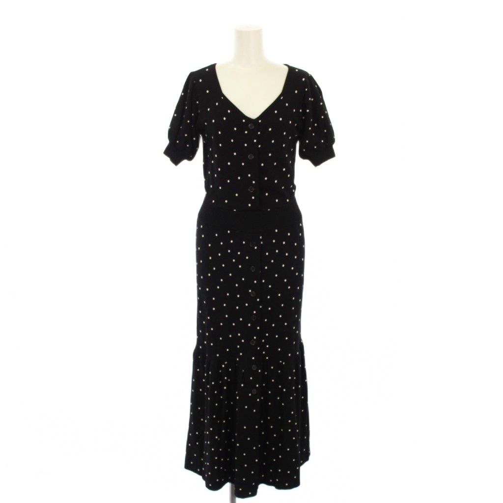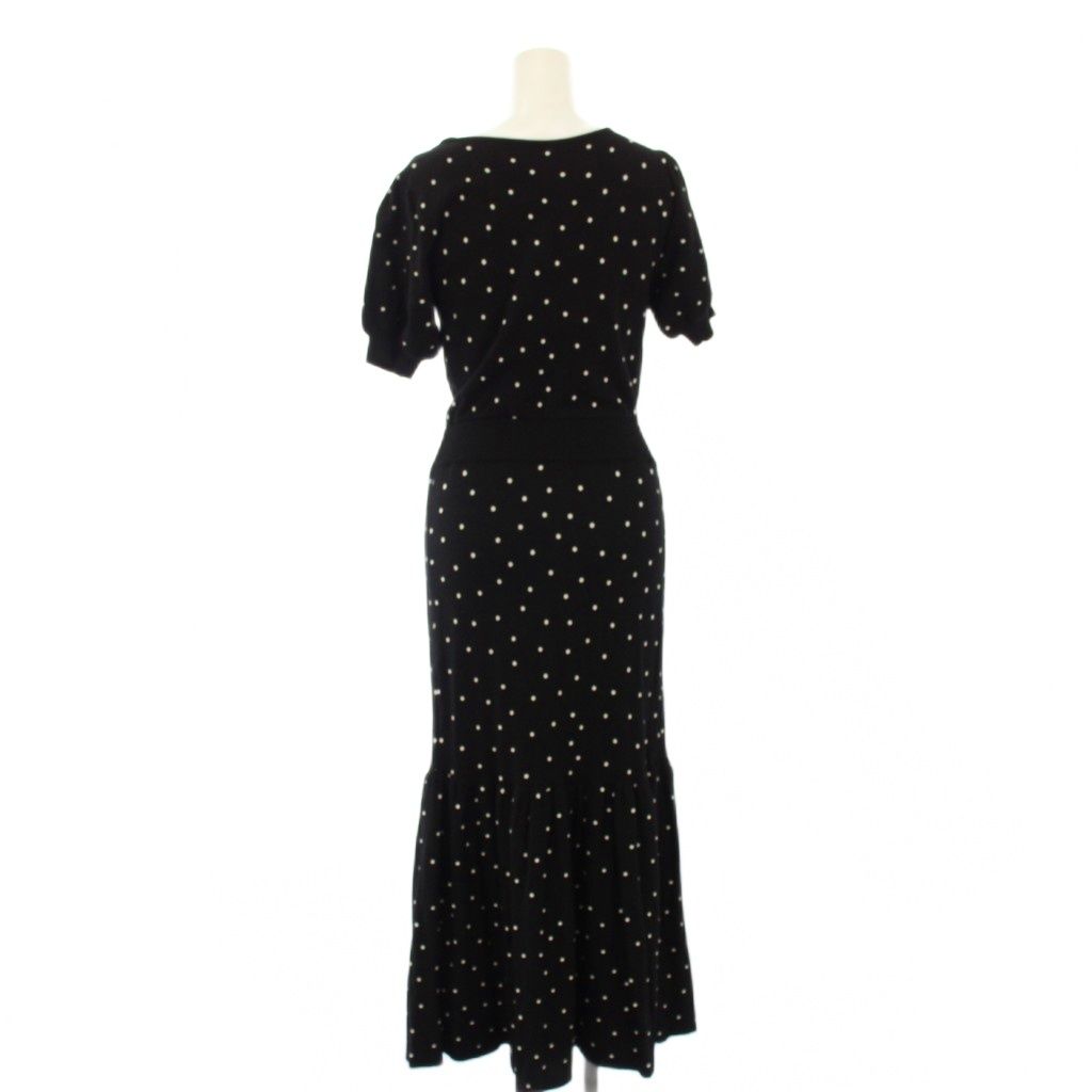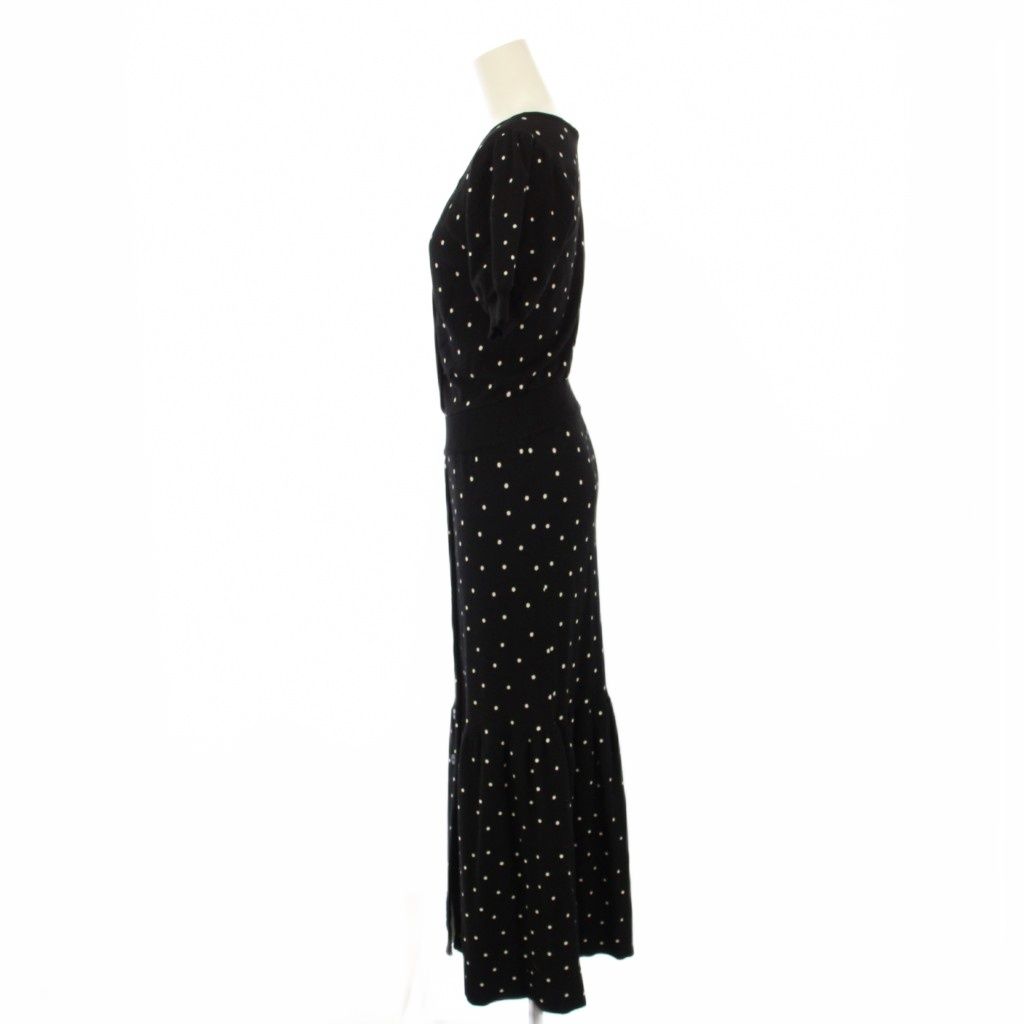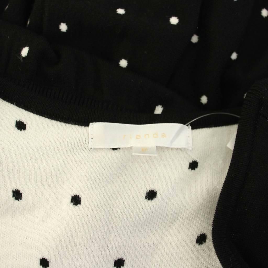 リエンダ rienda ワンピース F 黒 白 ドット柄 Vネック 半袖 /NS