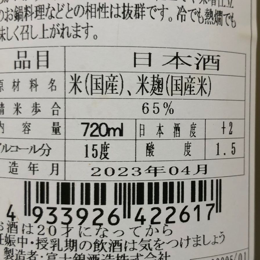 純米酒 富士錦 720ml 15% 日本酒- 純米酒【J4】