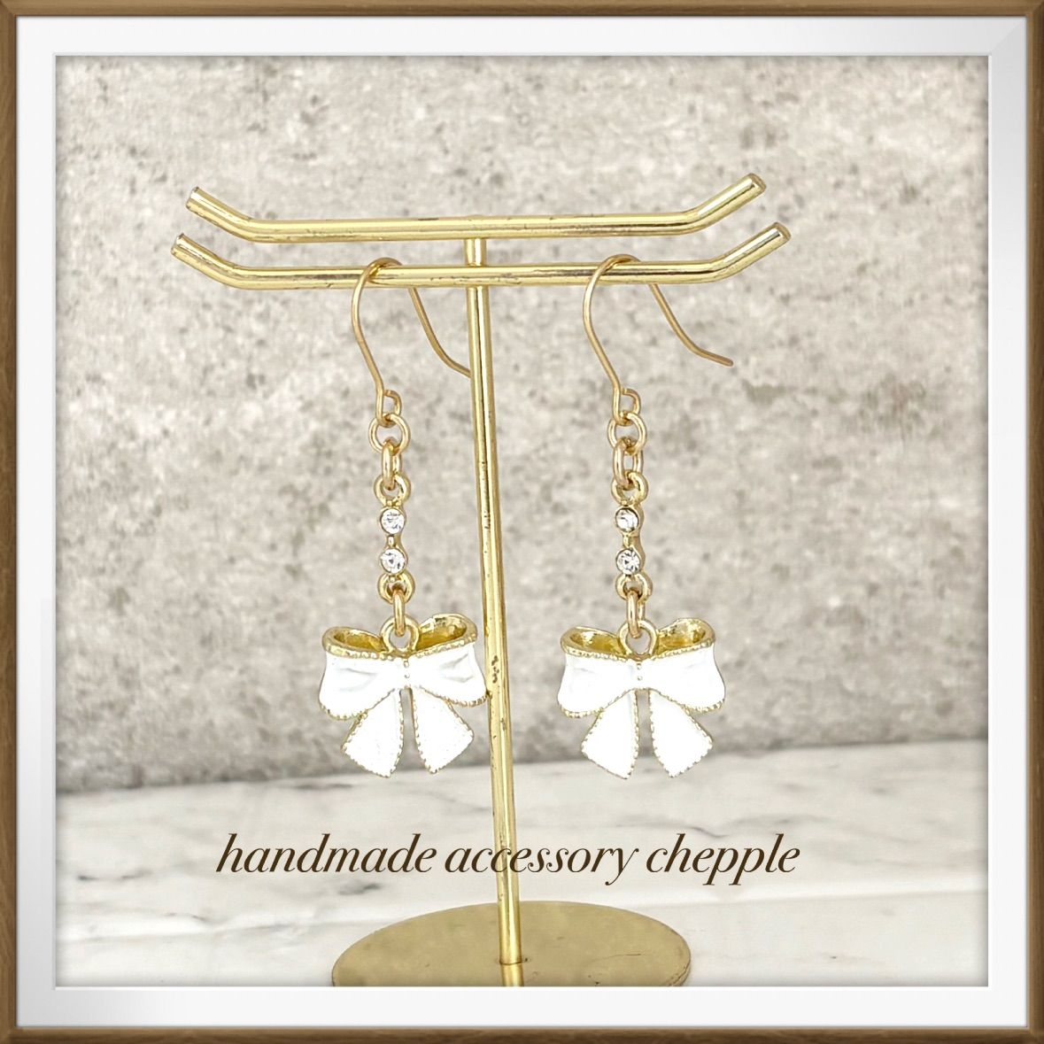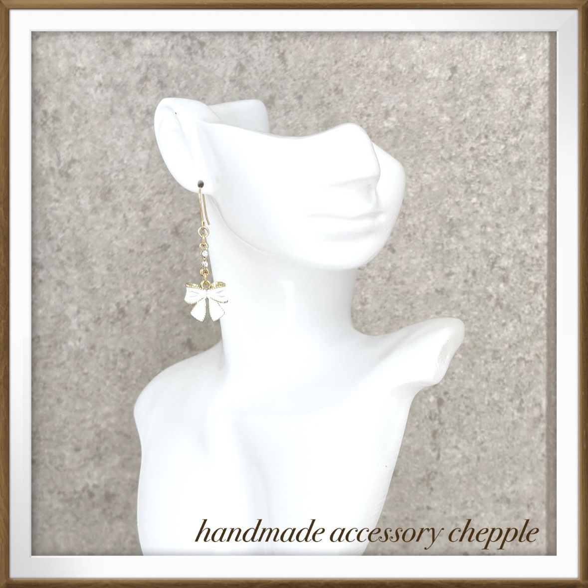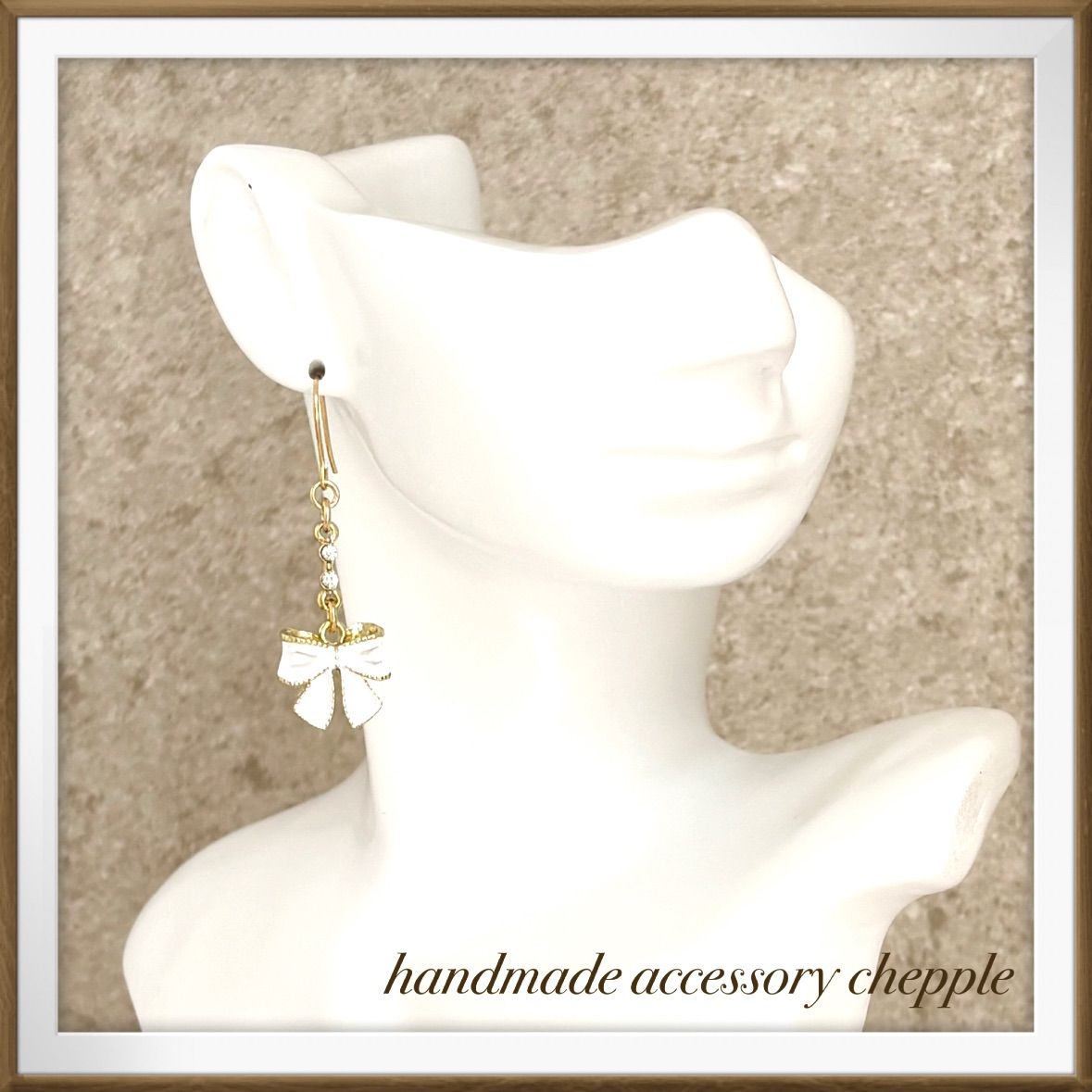 No.1648 リボンのピアス リボンのイヤリング ハンドメイドピアス ハンドメイドイヤリング ピアス イヤリング ホワイトのピアス ホワイトのイヤリング 白いピアス 白いイヤリング リボンチャームのピアス 大人可愛いピアス