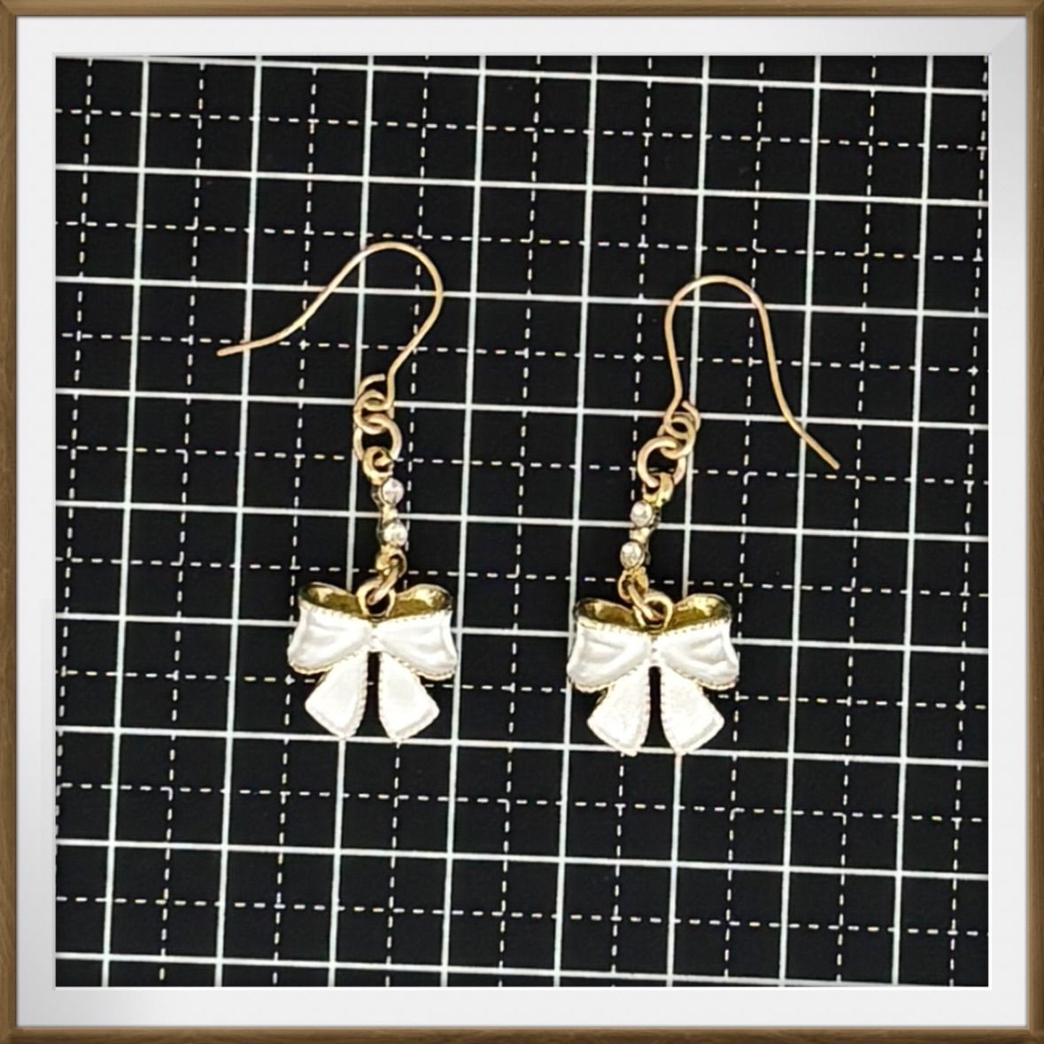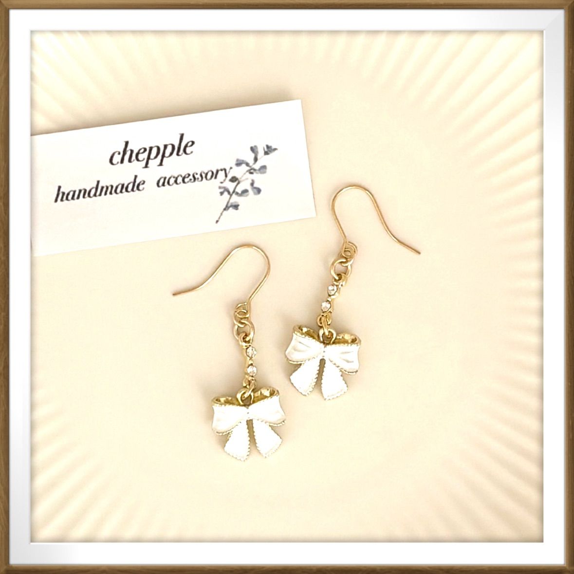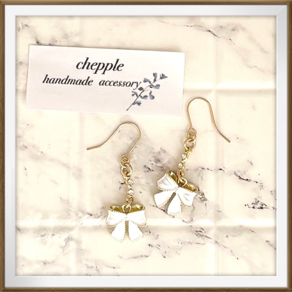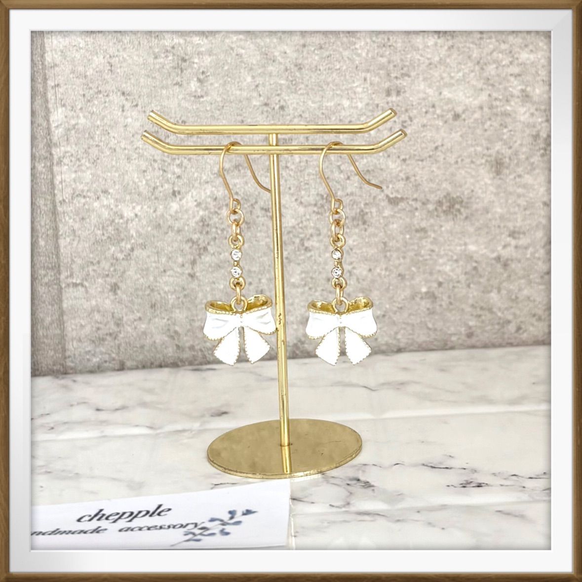 No.1648 リボンのピアス リボンのイヤリング ハンドメイドピアス ハンドメイドイヤリング ピアス イヤリング ホワイトのピアス ホワイトのイヤリング 白いピアス 白いイヤリング リボンチャームのピアス 大人可愛いピアス