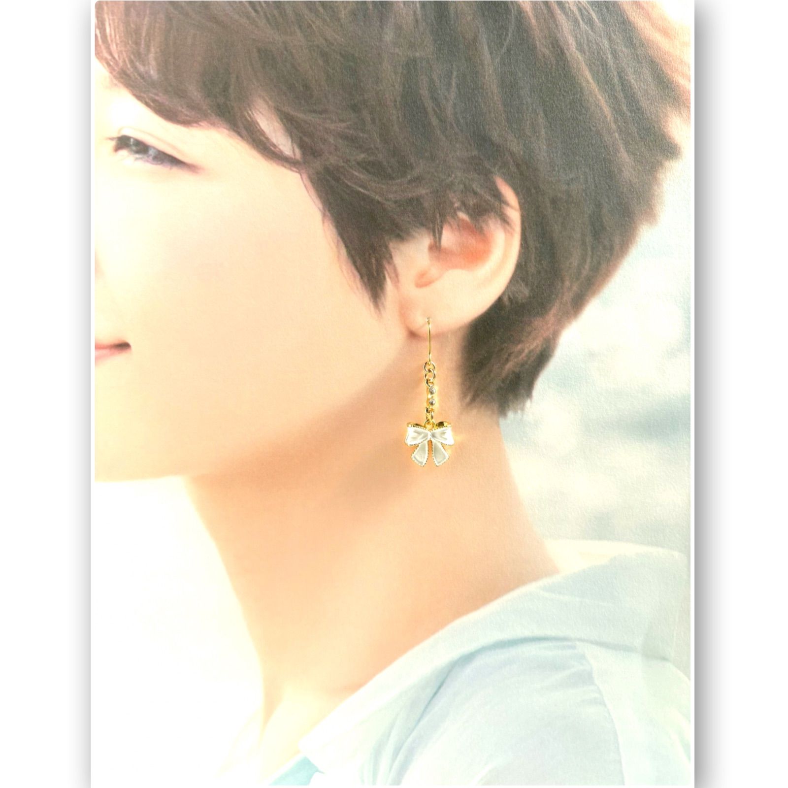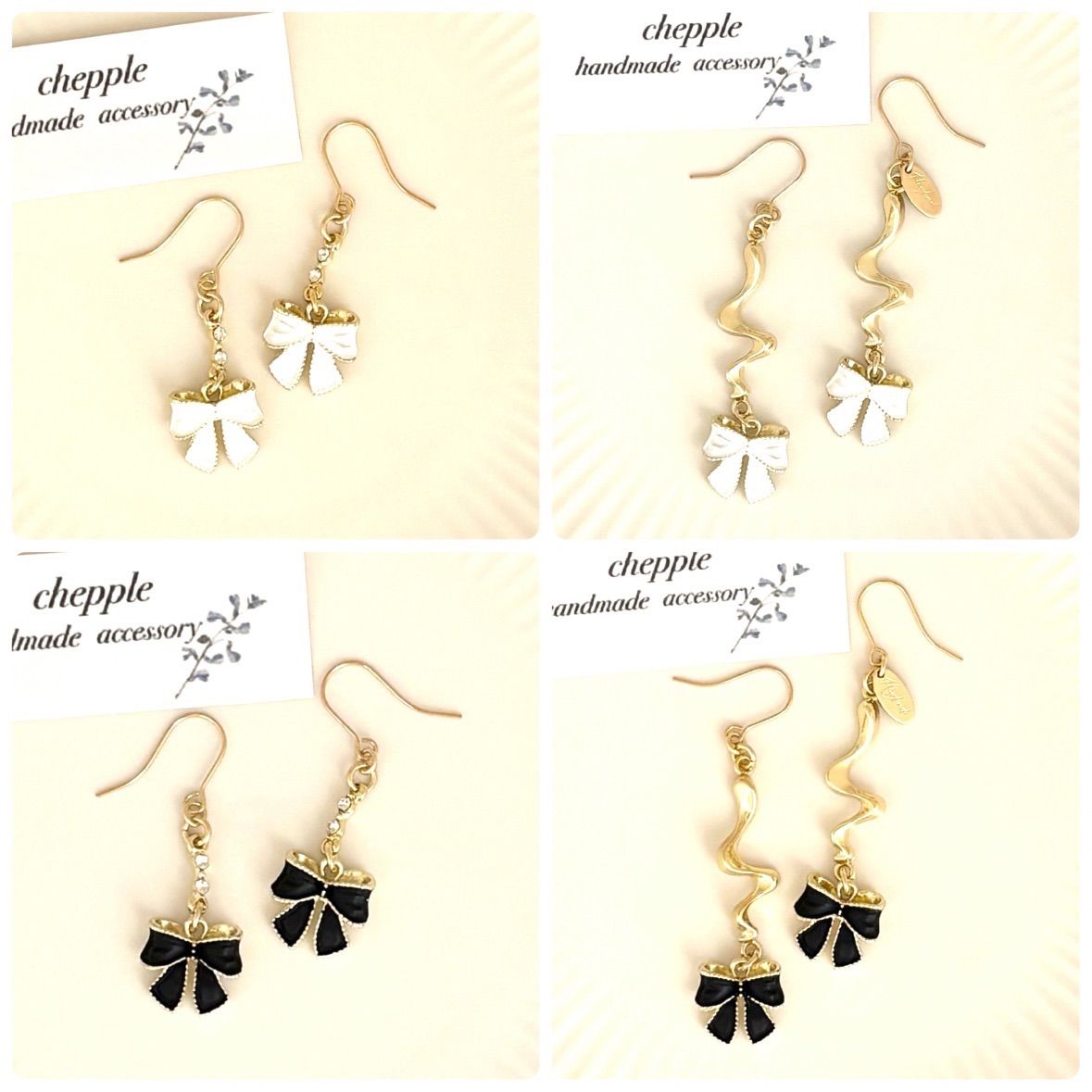 可愛いリボンチャームにキラキララインストーンが付いたゆらゆら揺れるピアスです⭐︎