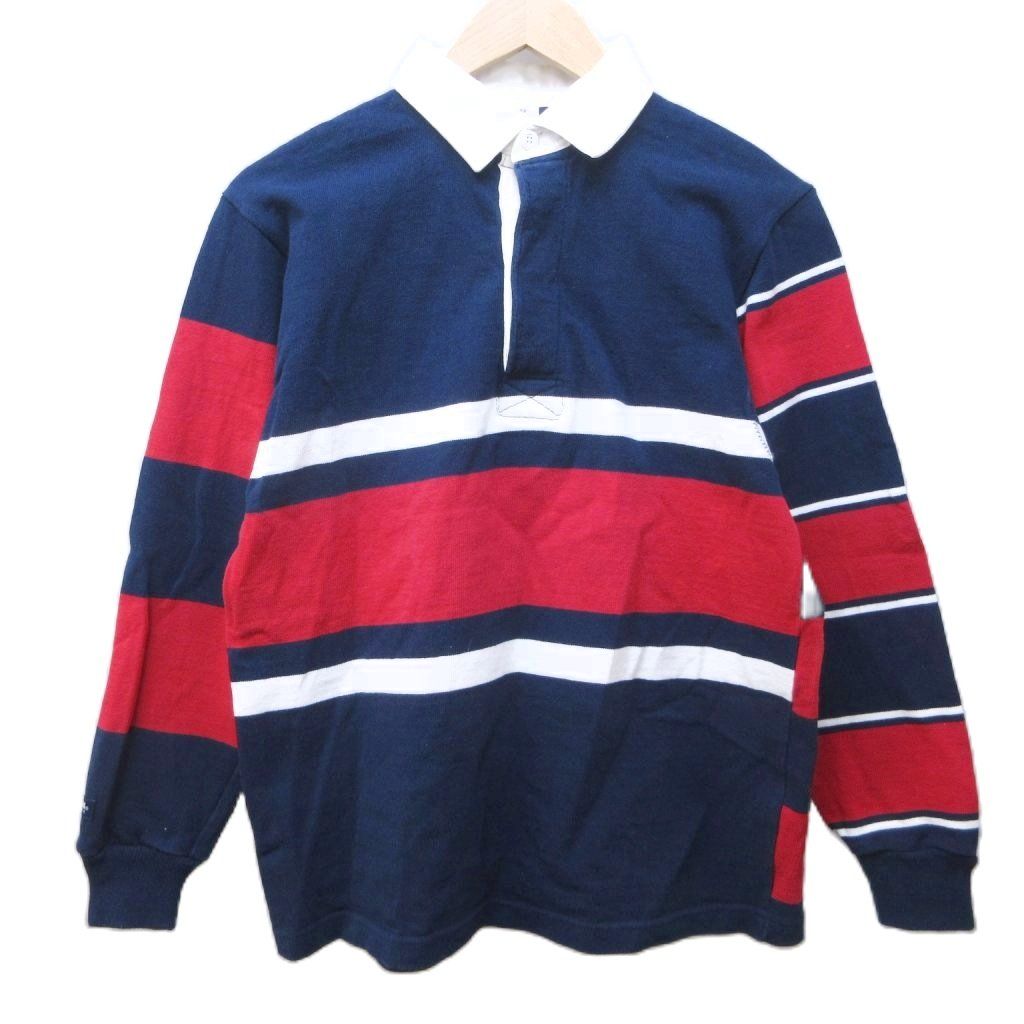 バーバリアン BARBARIAN ラガーシャツ ラグビーシャツ ボーダー 長袖 S 紺 赤 白 ネイビー レッド ホワイト IBO87 0127