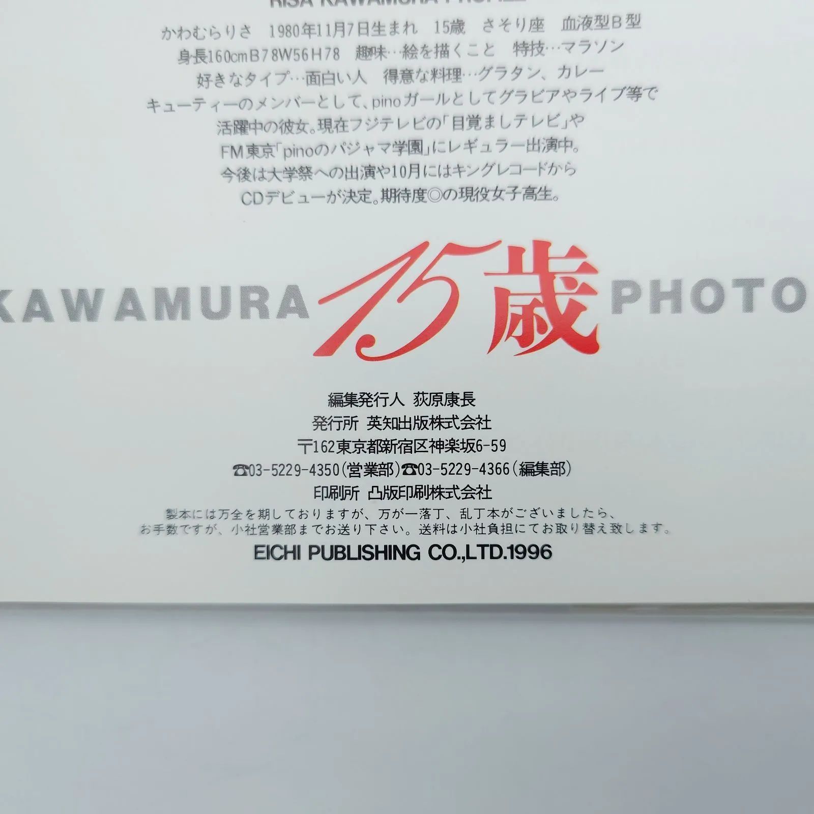 【河村理沙写真集『15歳』グラビア写真集 中古本】
