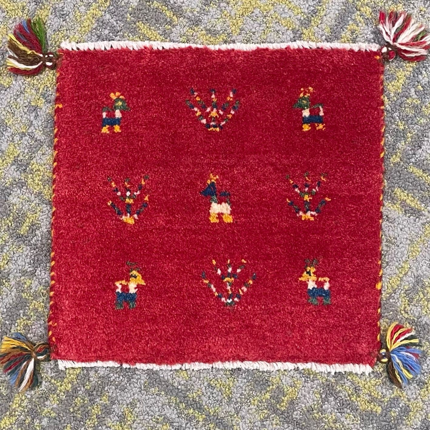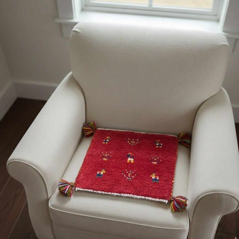 運命の1枚|至高のLolbaft ギャッベ 本物 ペルシャ 赤 36×39cm 幸せの道標