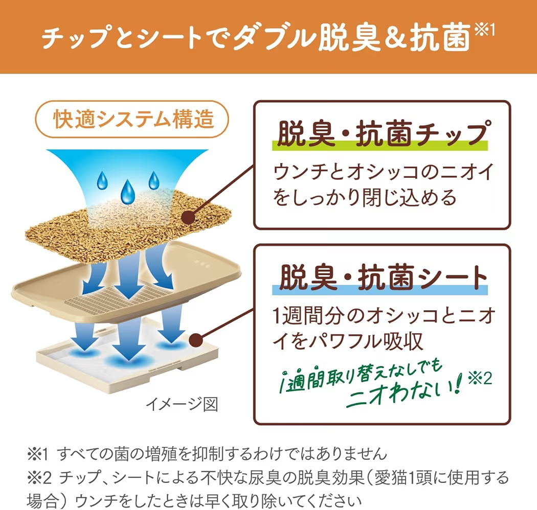 【1週間取り替えなしでもニオわない! 】ニャンとも清潔トイレ専用のチップとシートでダブル脱臭&抗菌※すべての菌の増殖を抑制するわけではありません