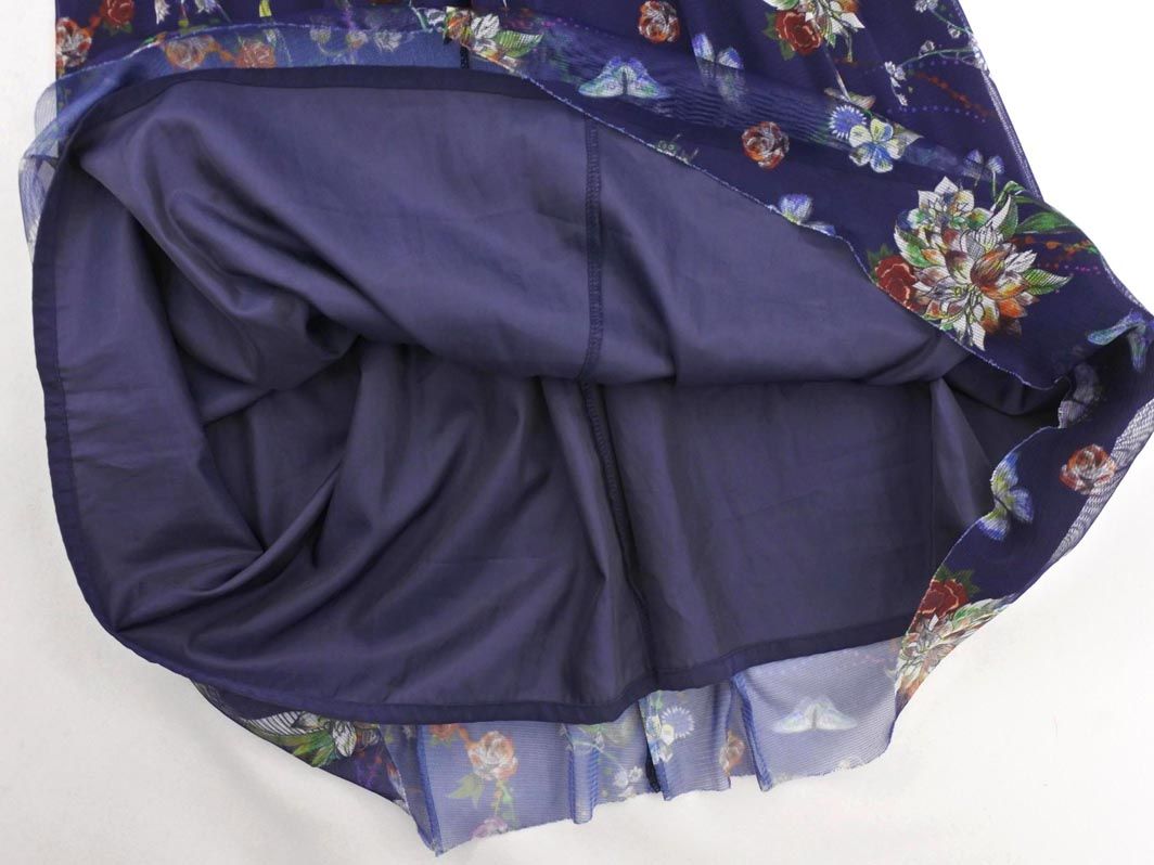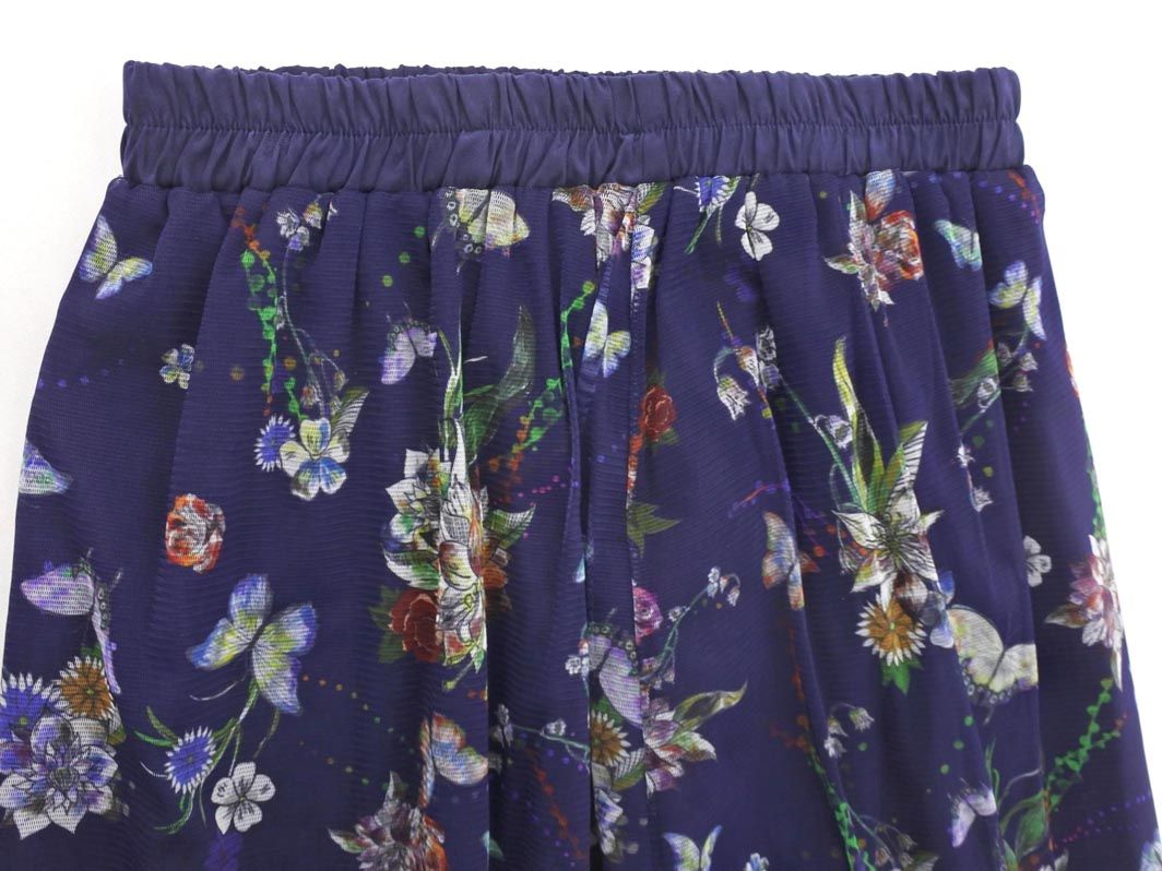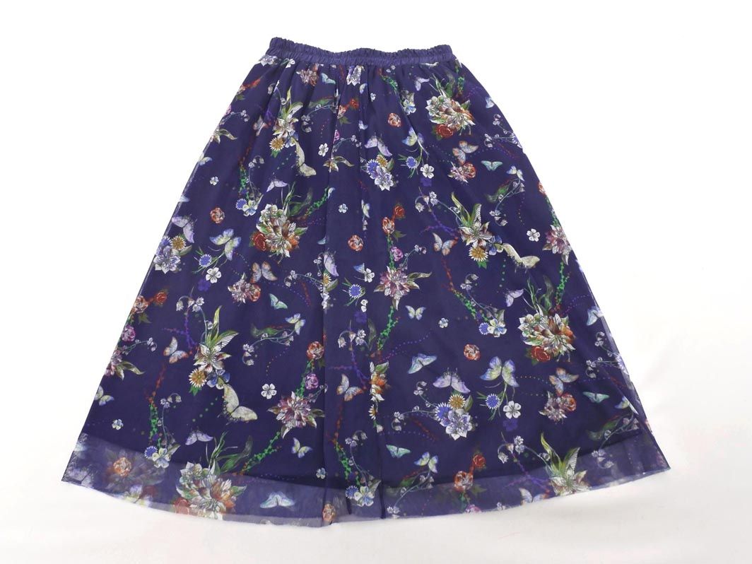scolar スカラー チュール 蝶々 花柄 ロング スカート sizeM/紺 ■◇ レディース