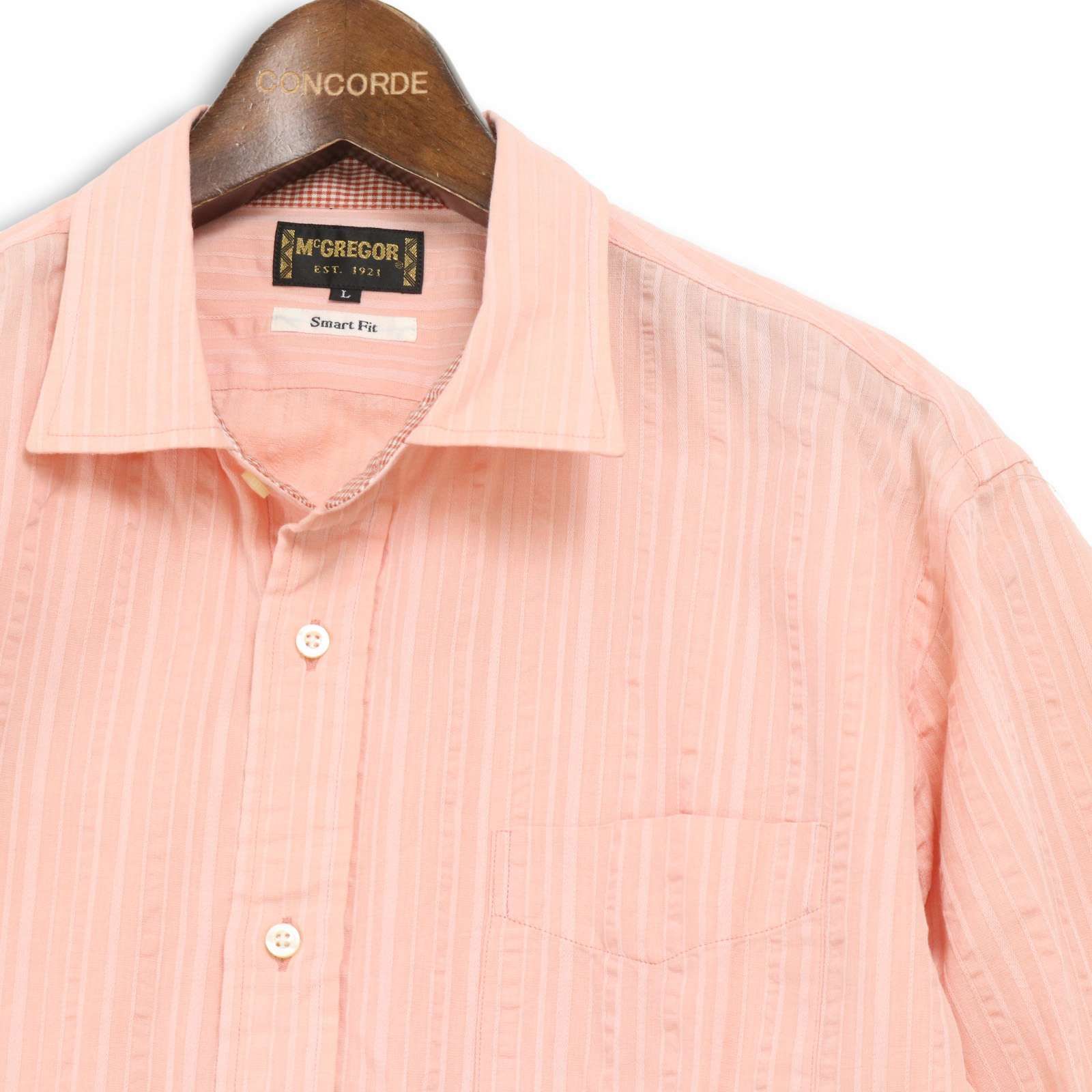 McGREGOR マクレガー 春夏 リネン★ 麻混 ロゴ刺繍 シアサッカー 長袖 ストライプ シャツ Sz.L メンズ