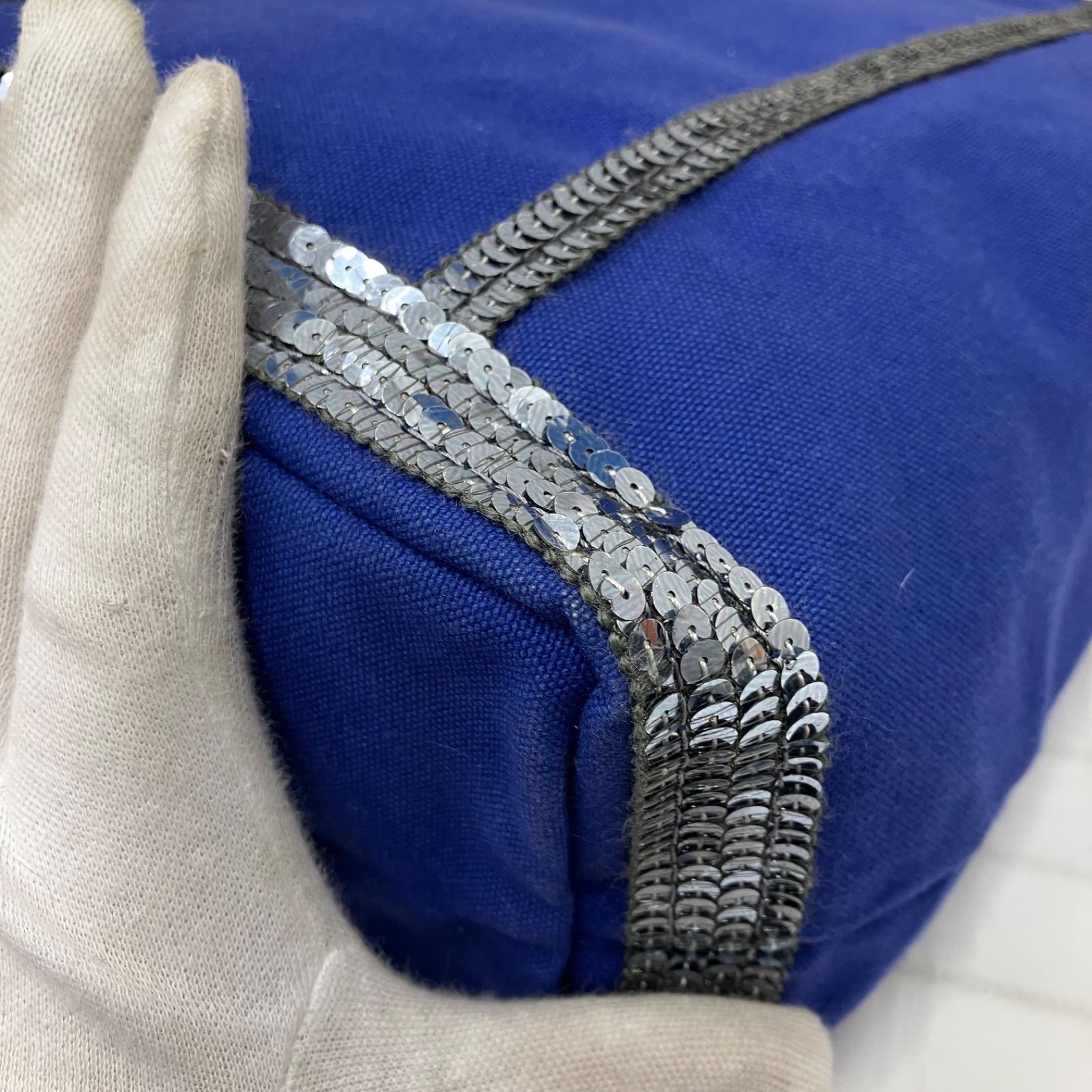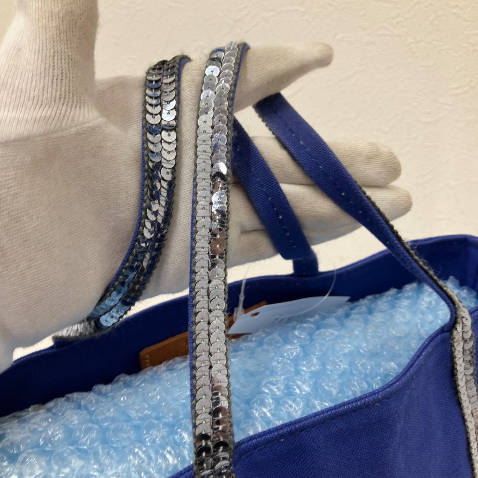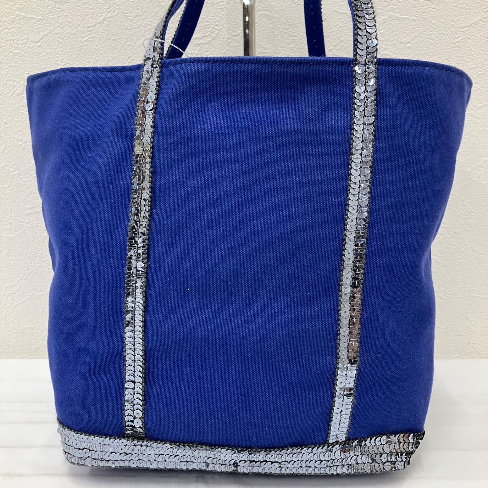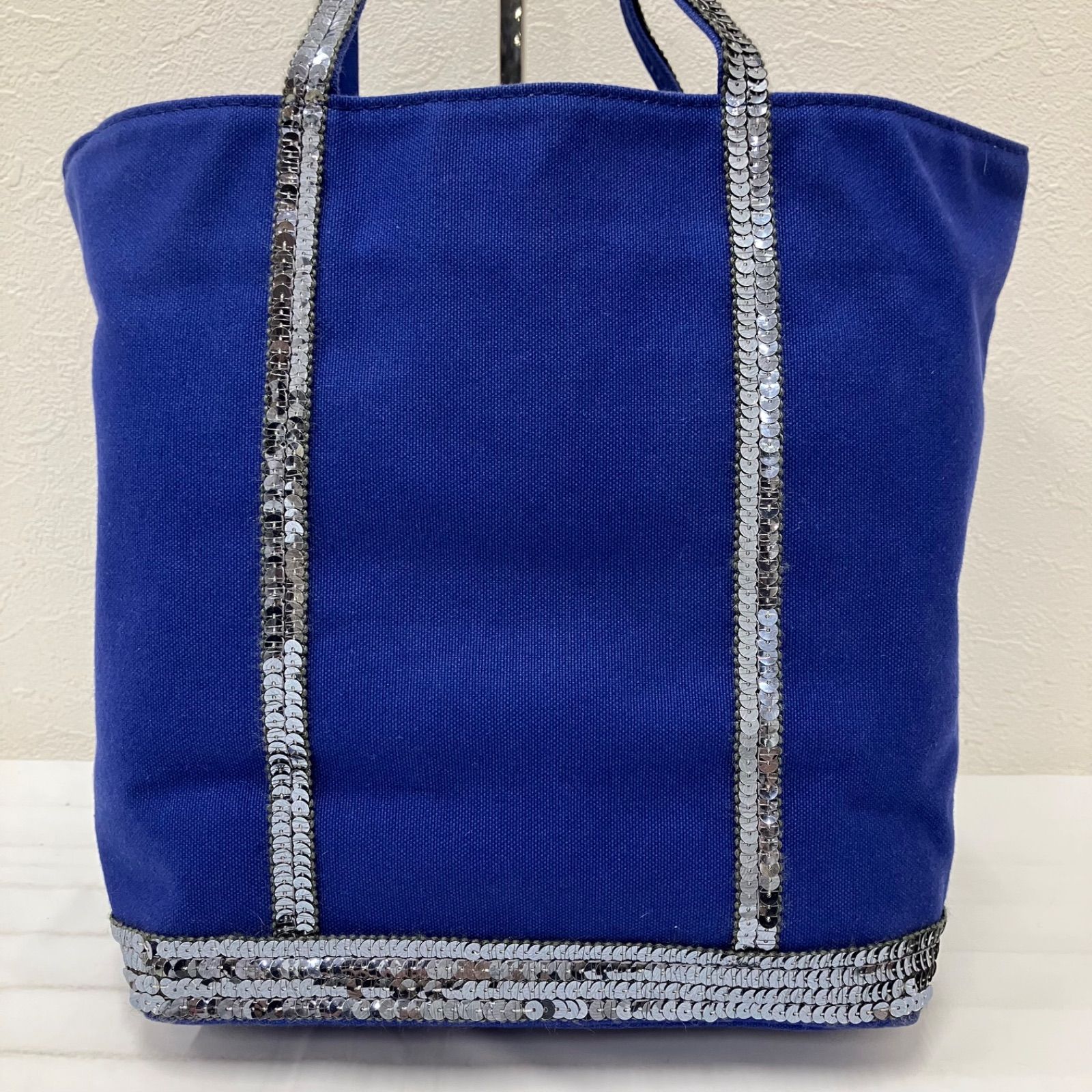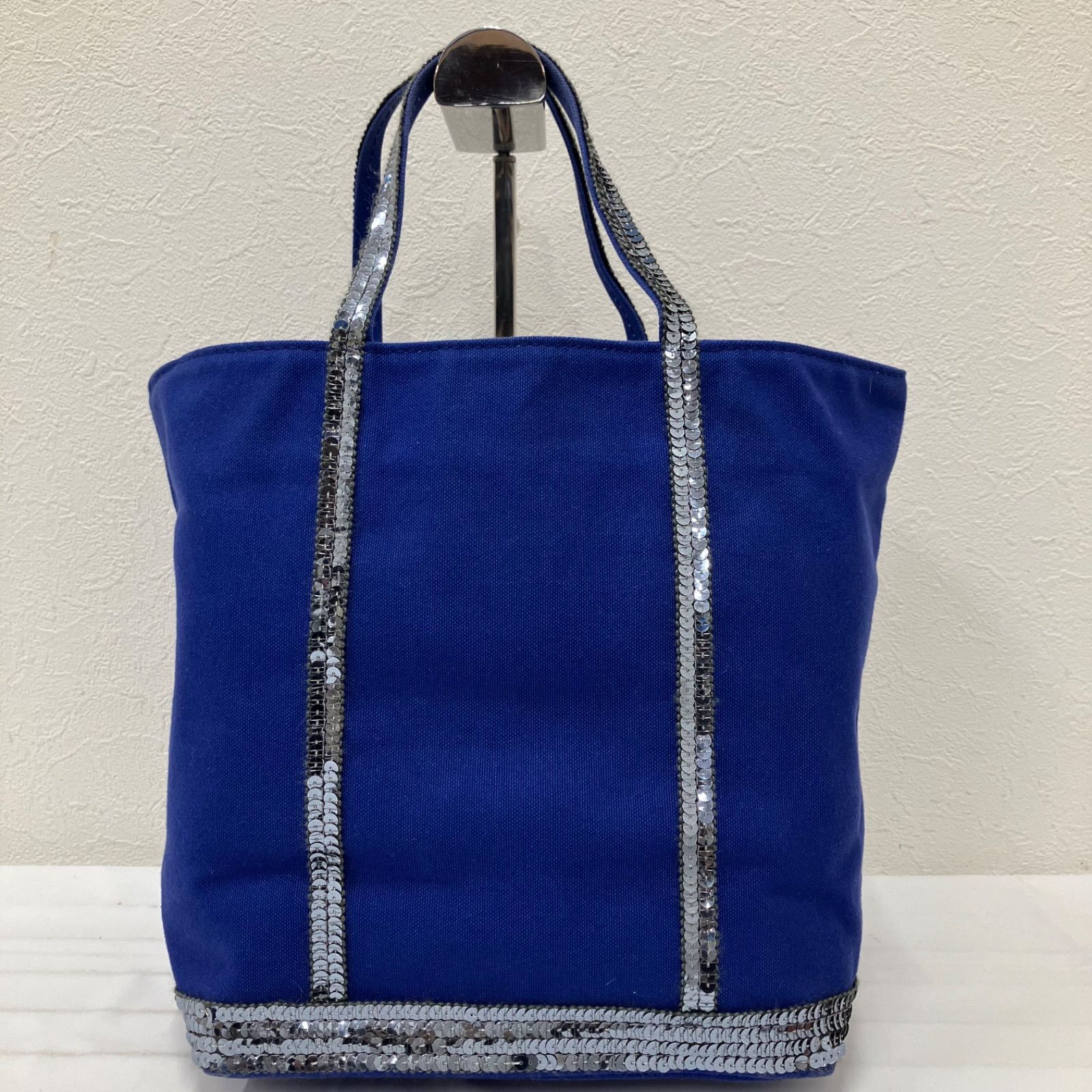 9651 vanessabruno ヴァネッサブリューノ トートバッグ ハンドバッグ キャンバス スパンコール ブルー 青 シルバー レディース シンプル きれいめ 上品
