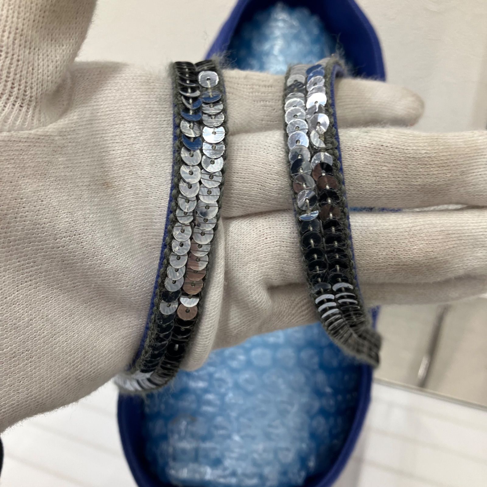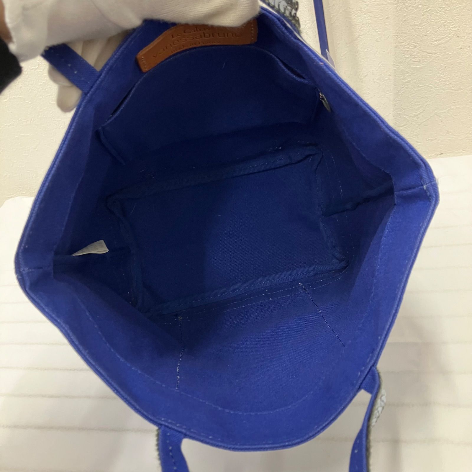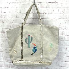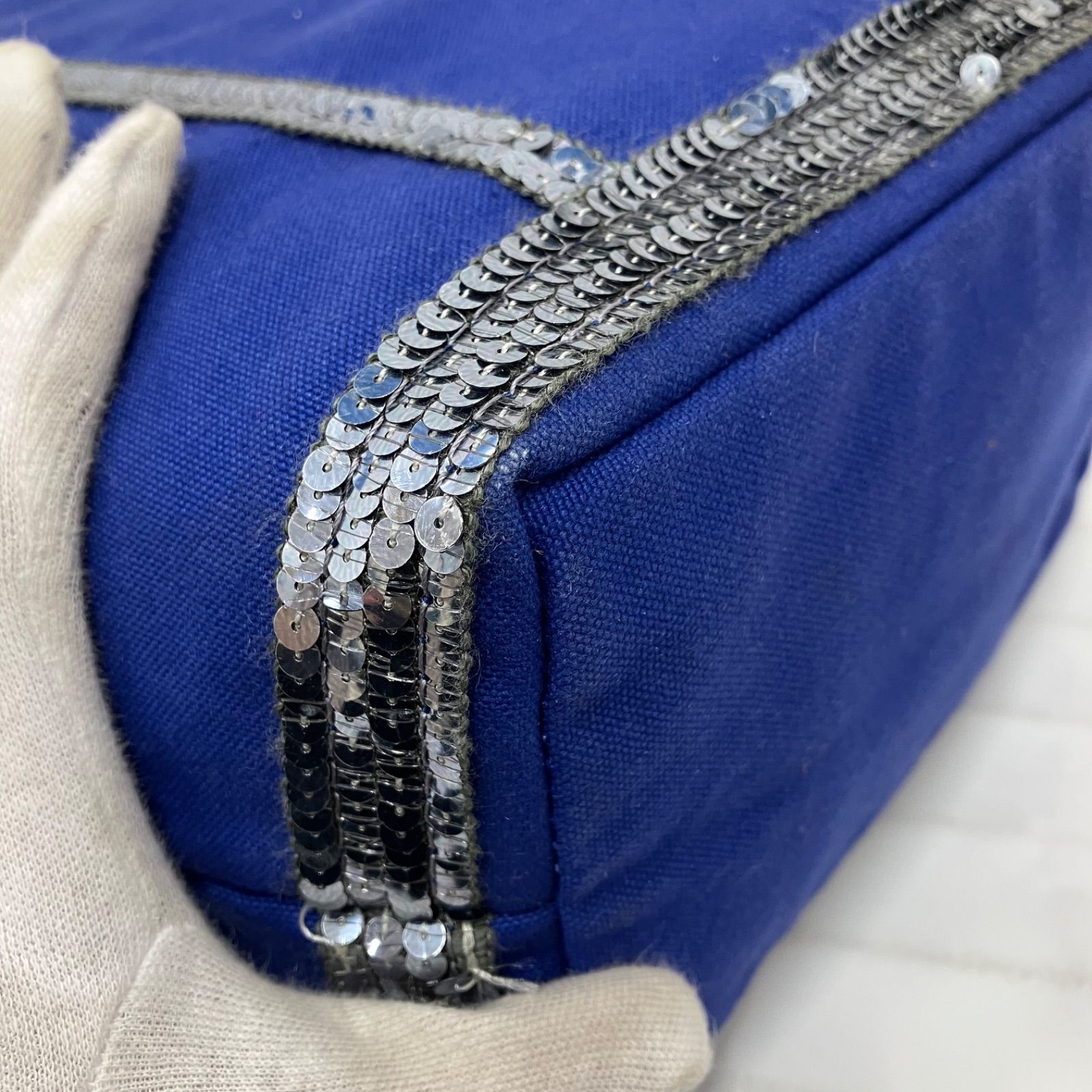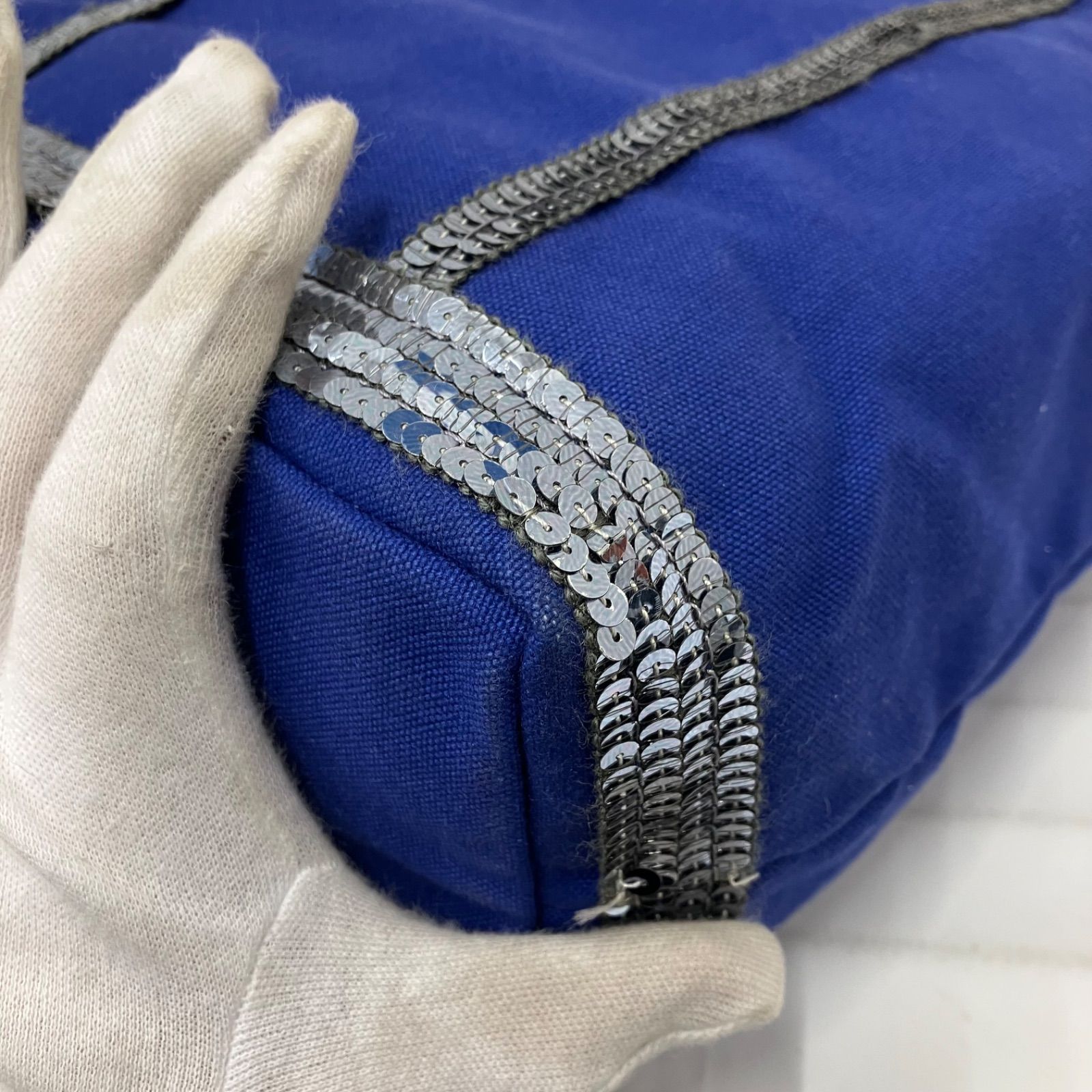 9651 vanessabruno ヴァネッサブリューノ トートバッグ ハンドバッグ キャンバス スパンコール ブルー 青 シルバー レディース シンプル きれいめ 上品