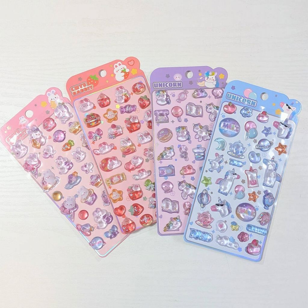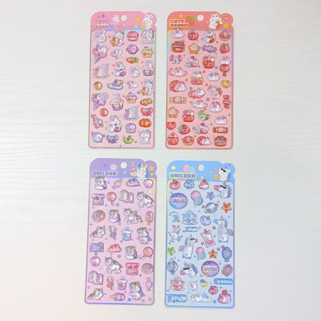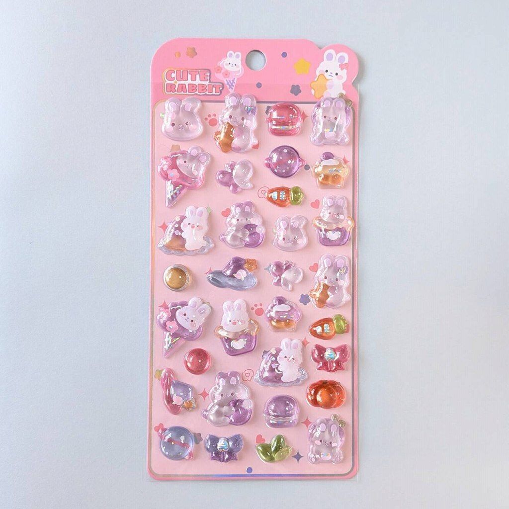 ステッカー 3D立体シール キュートラビット ピンク パープル うさぎ アイスクリーム ケーキ にんじん 紫色 ボンボンシール ドロップシール 3Dシール ぷくぷく シール交換 キラキラ かわいい 人気 St-08 ビーズクラブ