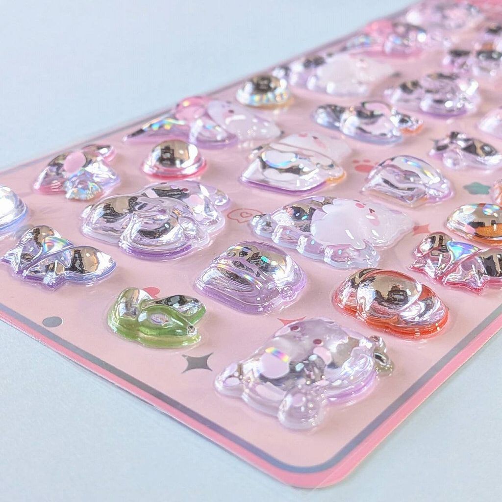 うさぎがモチーフの透明のぷっくりしたドロップシールのシートです。