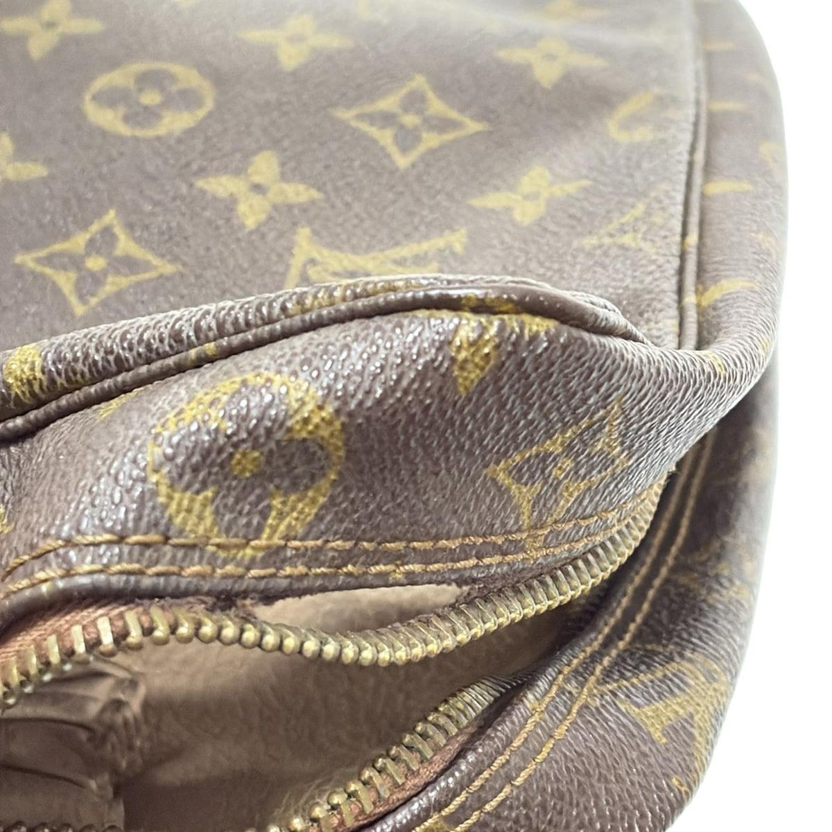 ・メイン口 ⇒ 角擦れ若干 / 型崩れ若干 / 金具不具合あり、修理が必要(ファスナーやぶれあり)