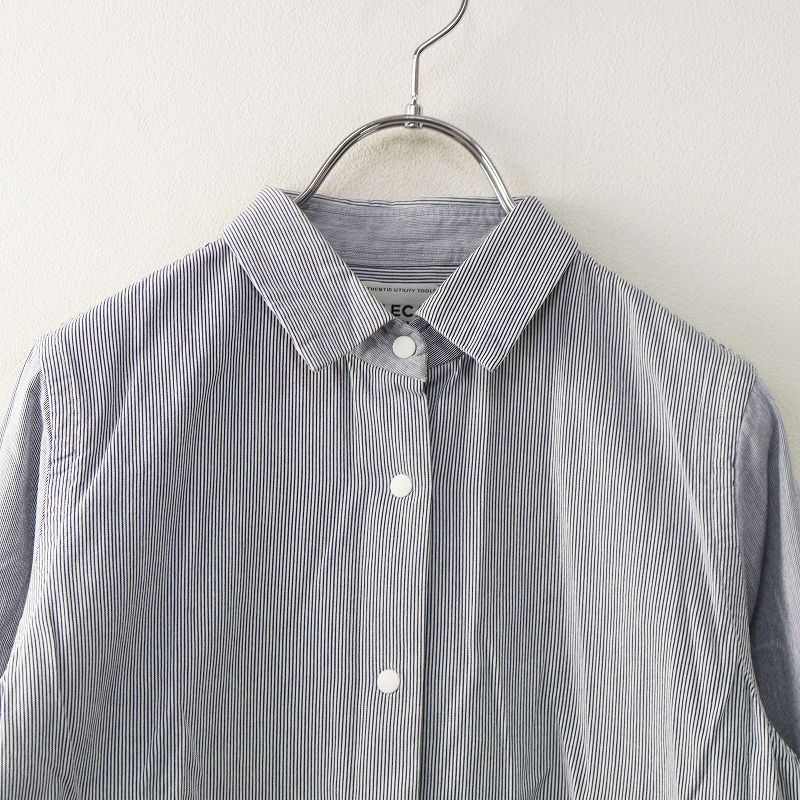ヤエカ YAECA ピンストライプ コンフォート 長袖シャツ S┃グレー ブラウス トップス スナップボタン開閉【2400014833850】
