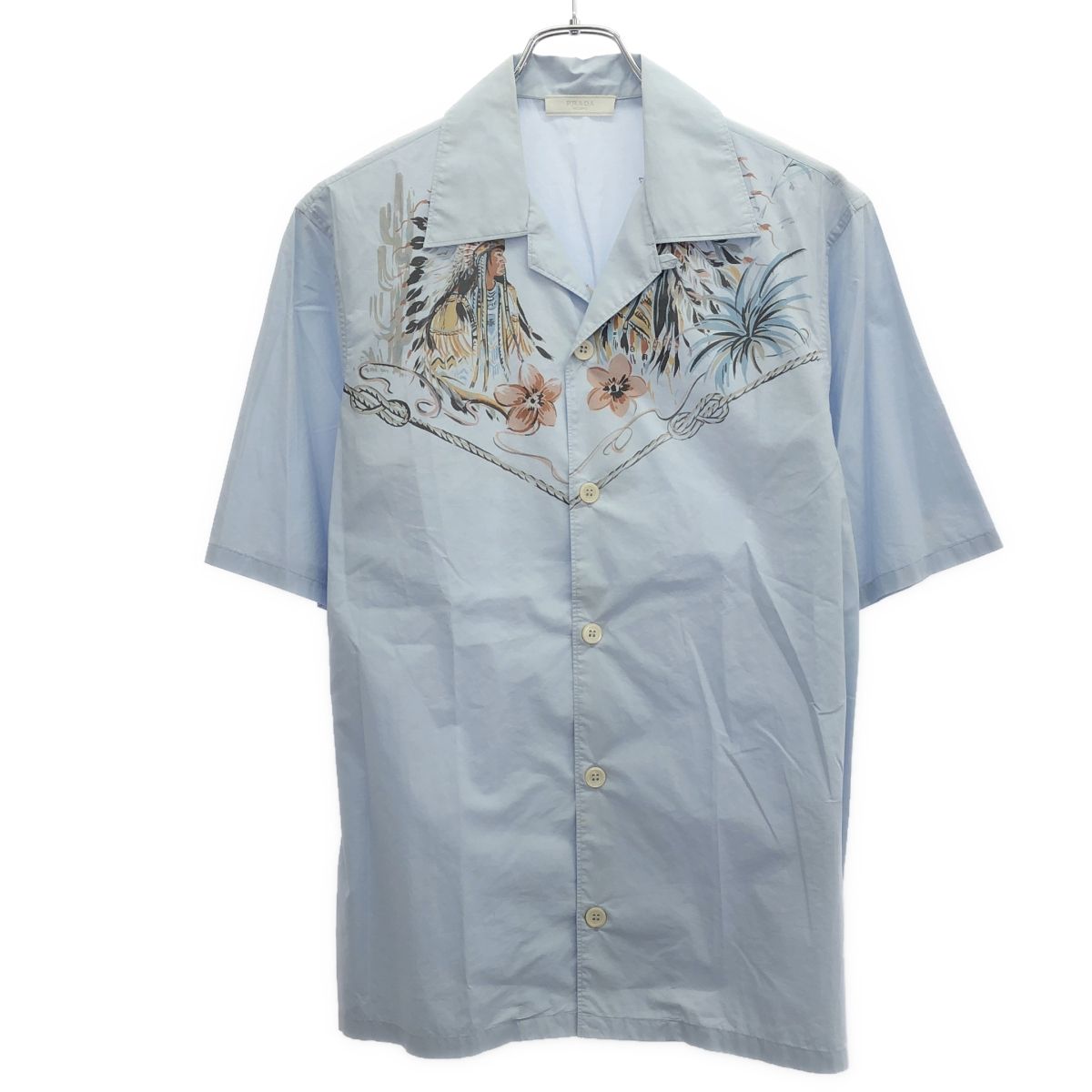 PRADA プラダ インディアンプリントオープンカラーシャツ UCS315 サックスブルー M