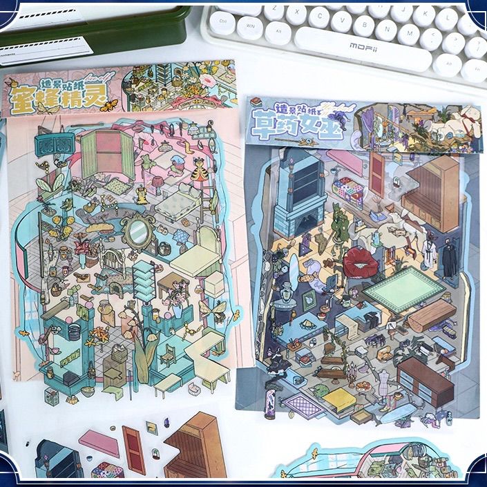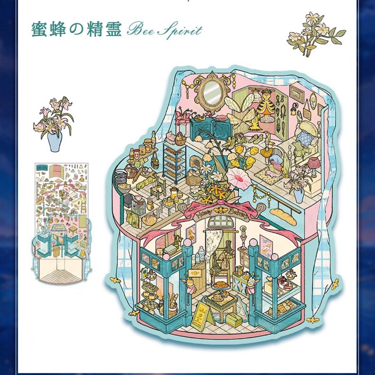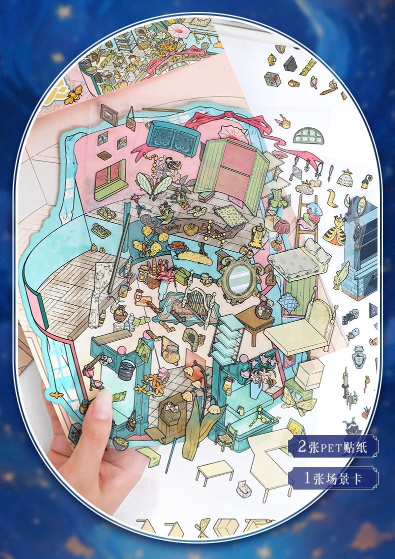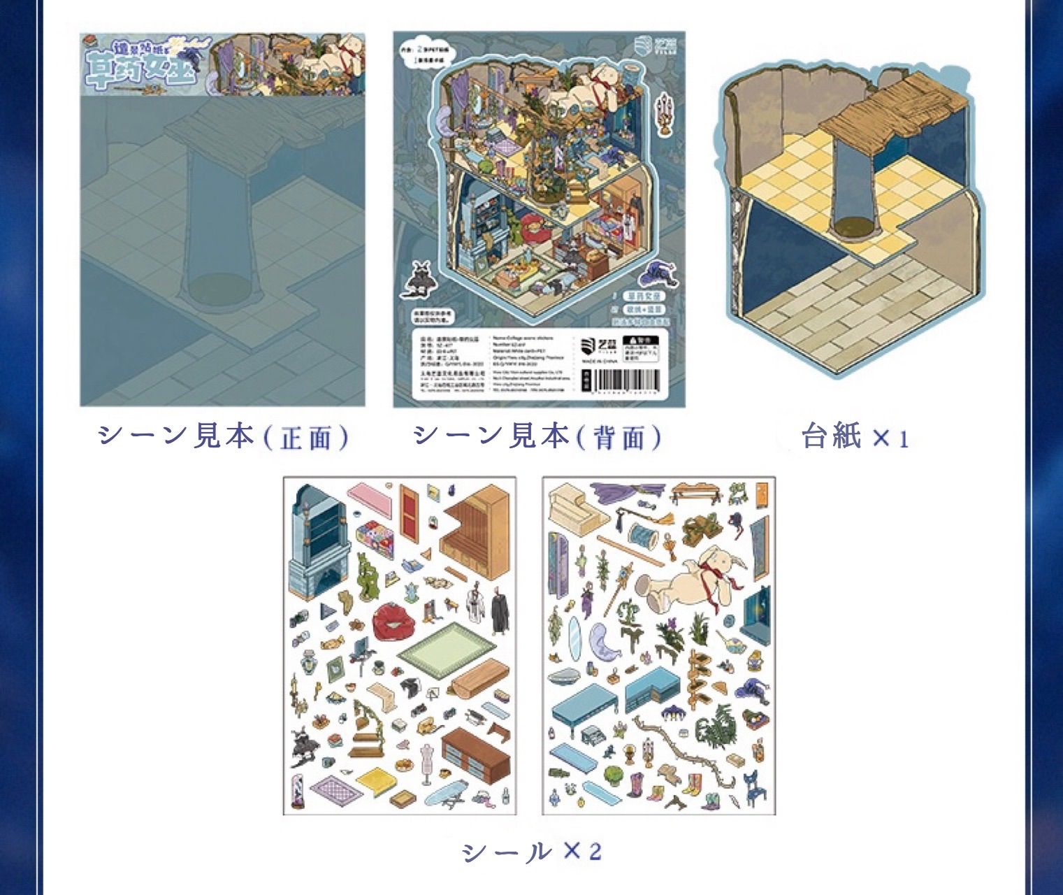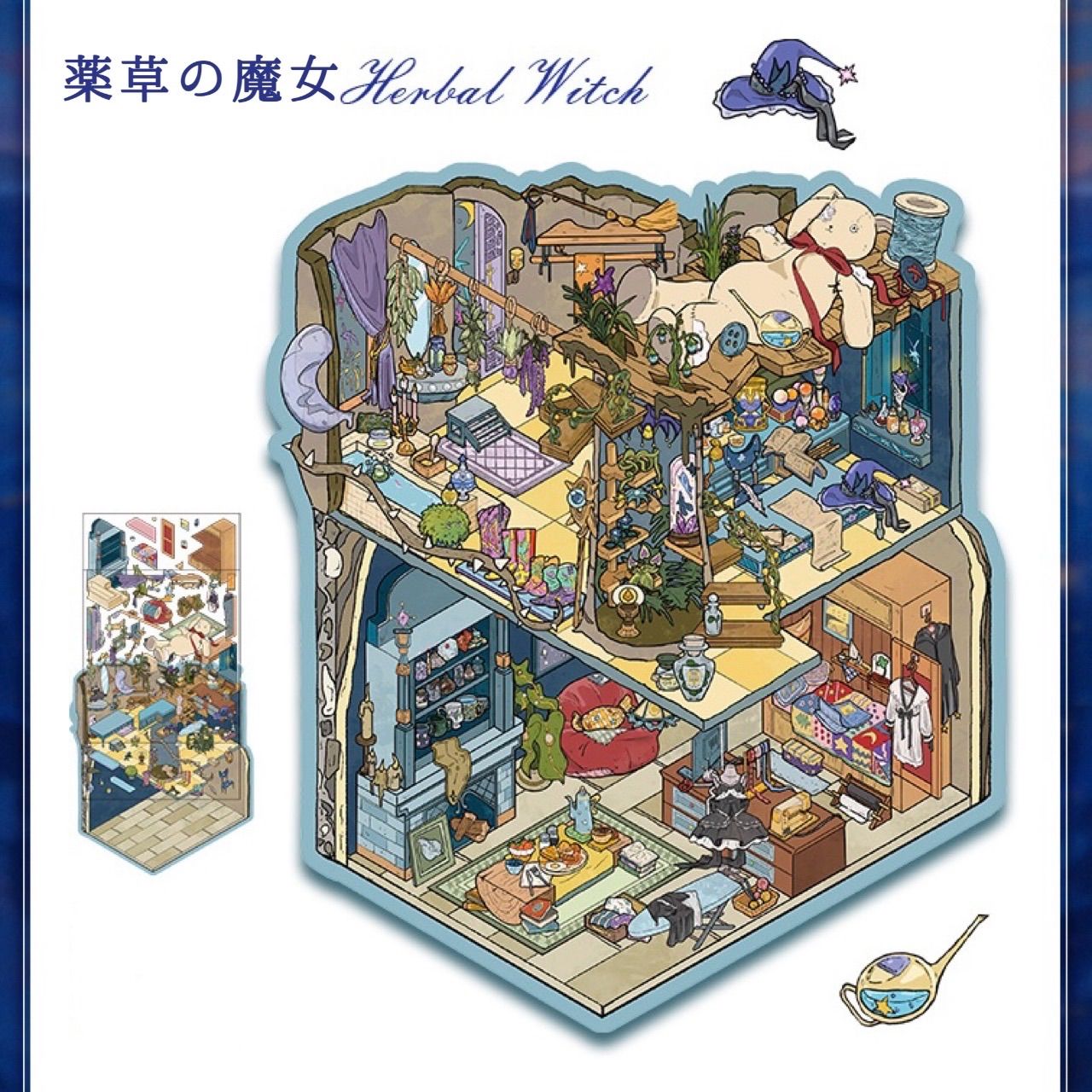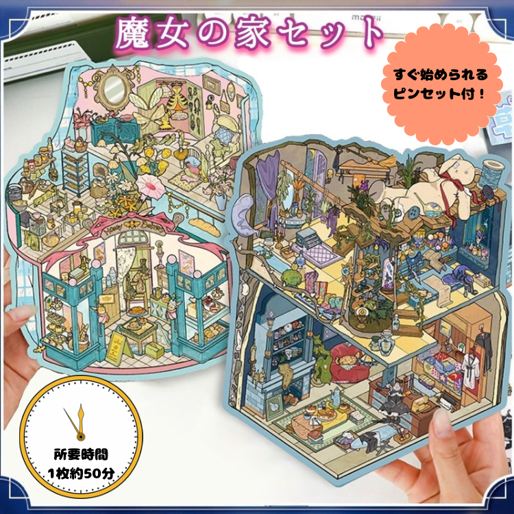 3Dシーンステッカー 魔女の家セット ピンセットつき 難易度★★★ 中級 人気シール 造形ステッカー 3Dステッカー おしゃれ キレイ ハウスシール シーンシール