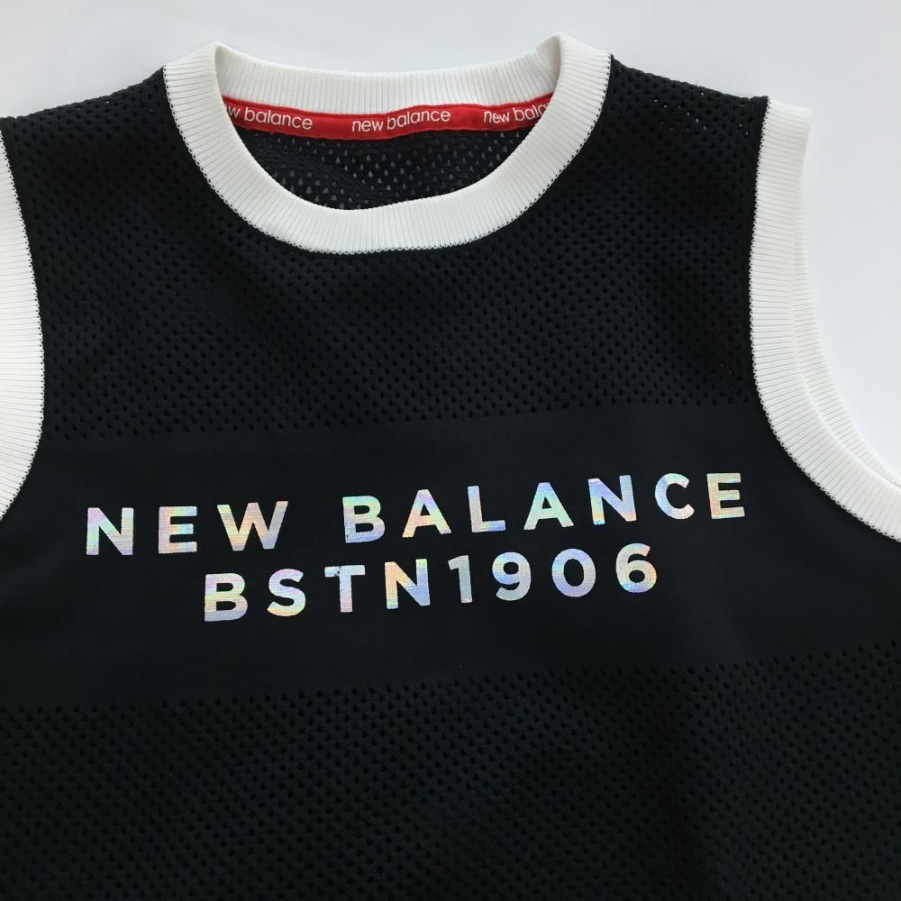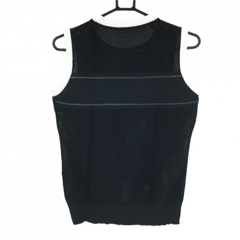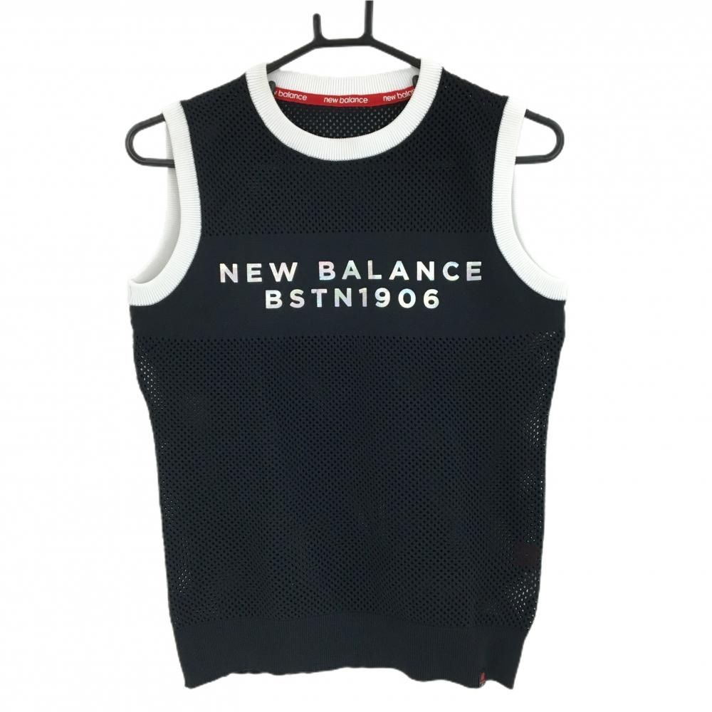 【超美品】ニューバランスゴルフ ニットベスト 黒 透かし編み フロントロゴ レディース 1(M) ゴルフウェア New Balance