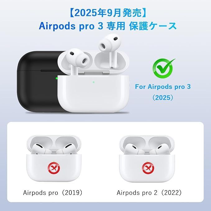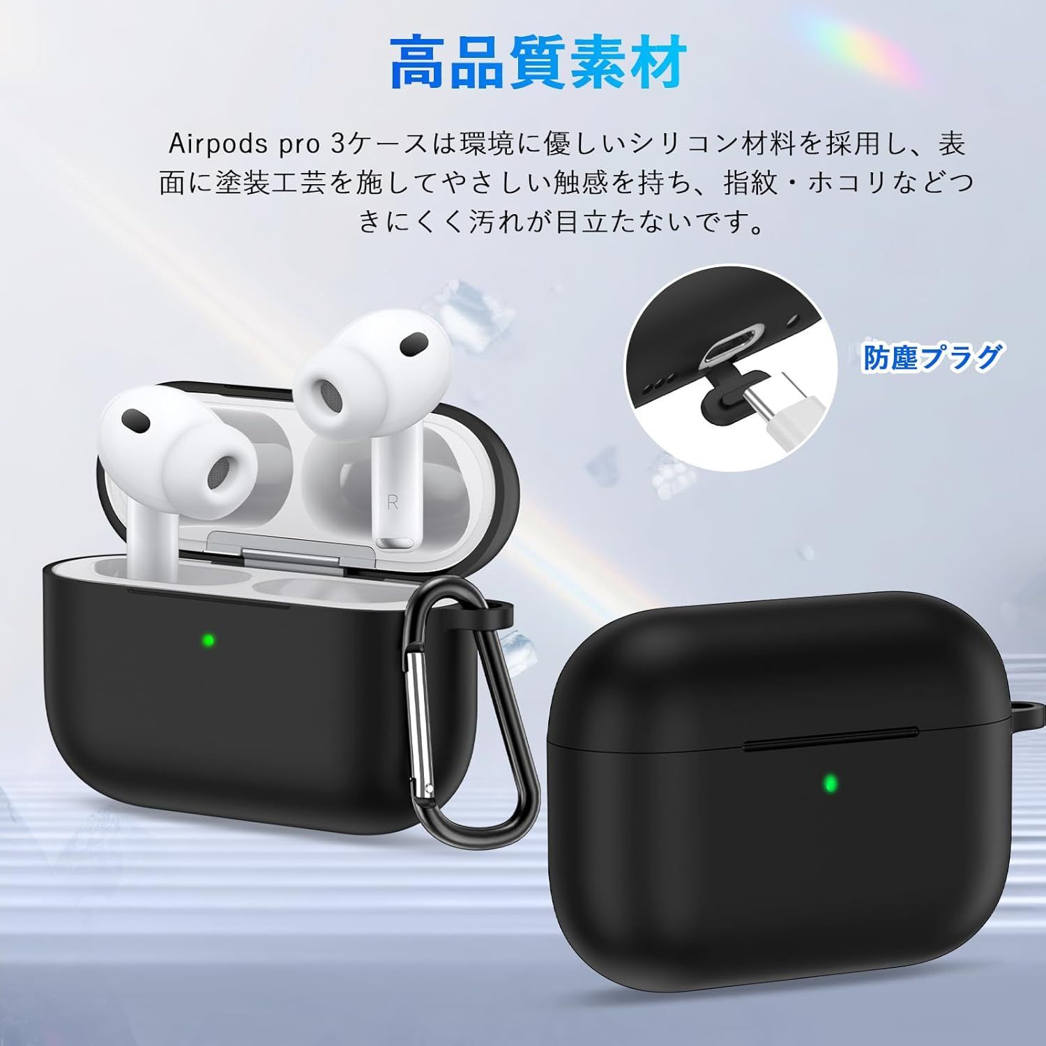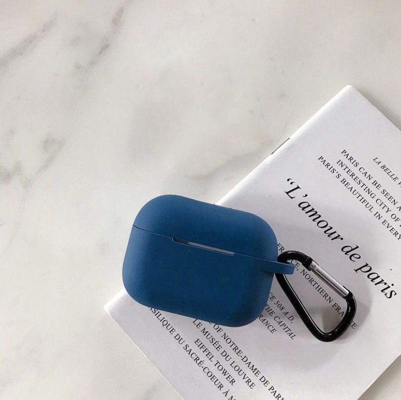 AirPods Pro3ケース 保護カバー シリコン キズ防止 カラビナ付き 紺