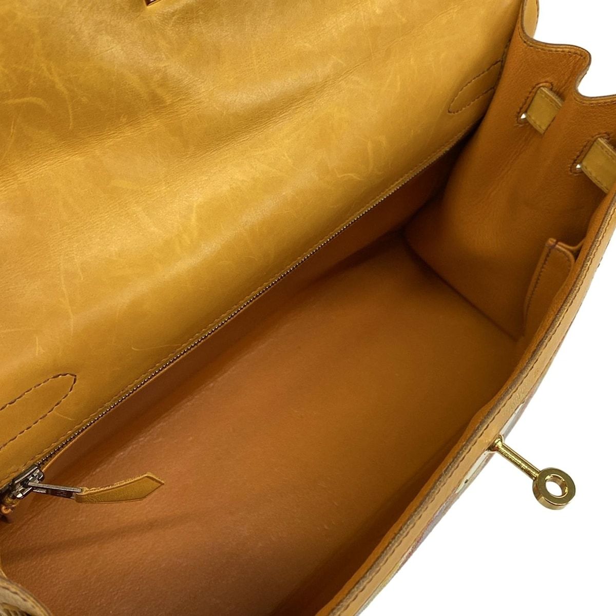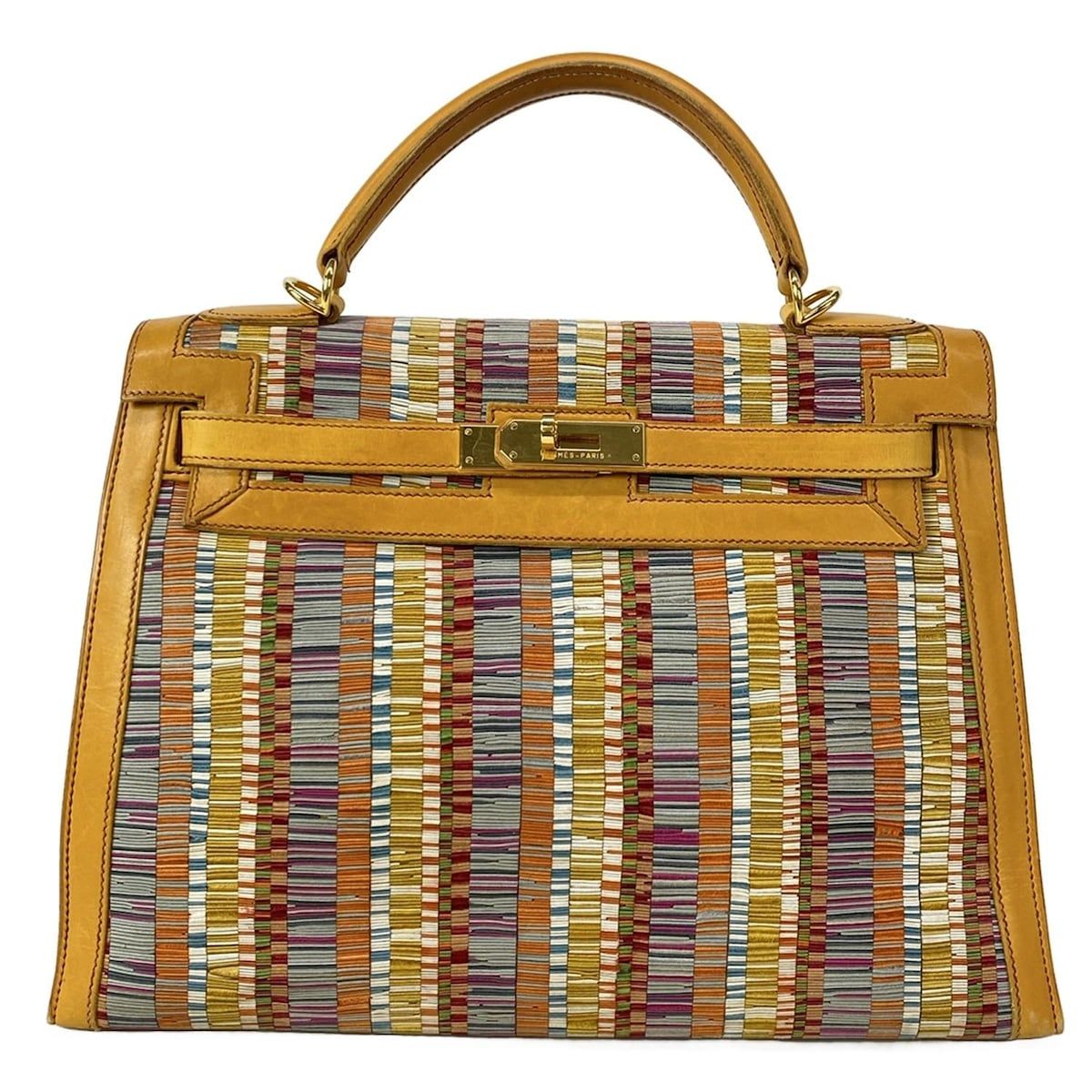 HERMES(エルメス) ハンドバッグ ケリー32 イエロー×オレンジ×マルチ 外縫い/ゴールド金具