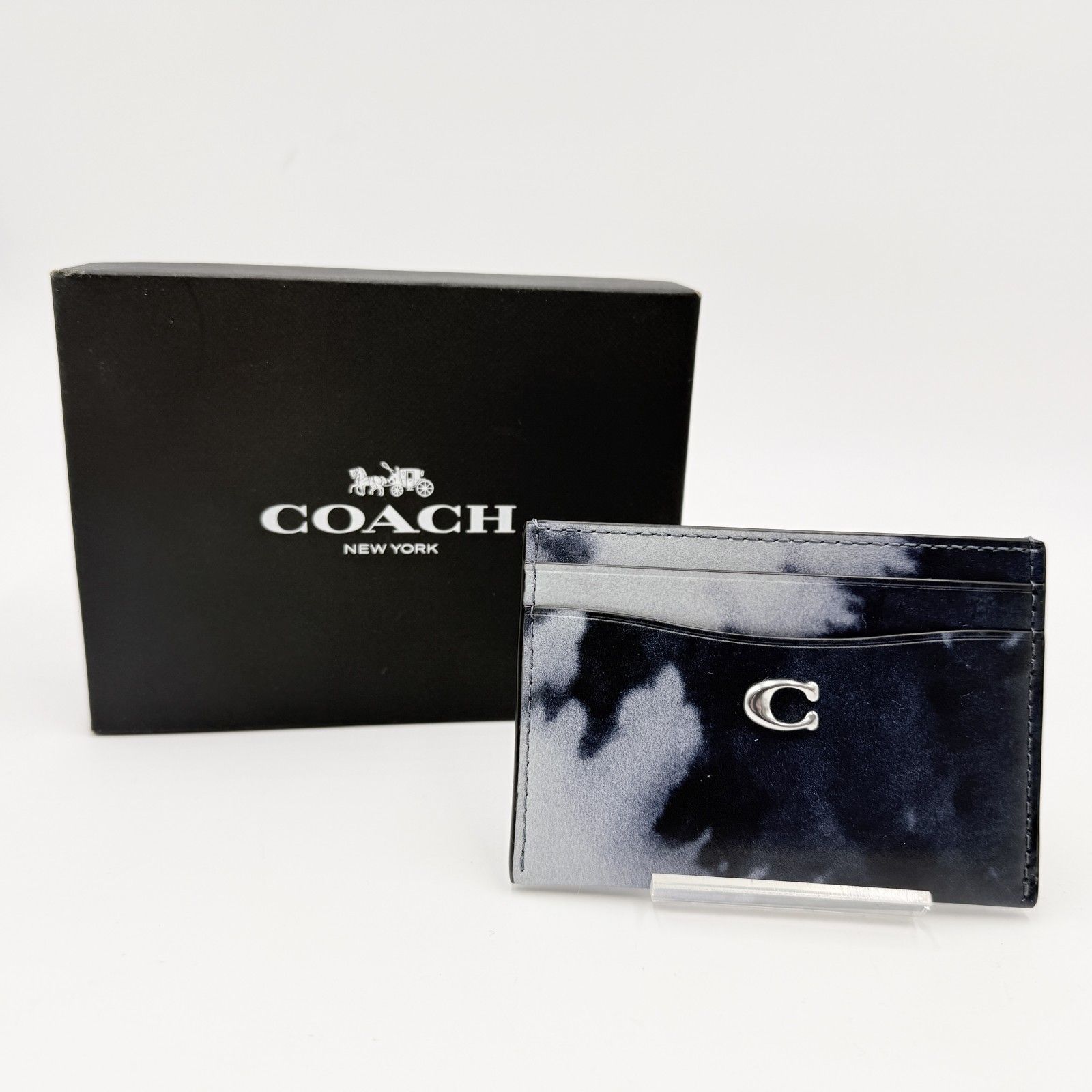 COACH(コーチ)カード ケース タイダイ プリント カードケース 名刺入れ パスケース レザー ブラック系 シルバートーン金具 レディース
