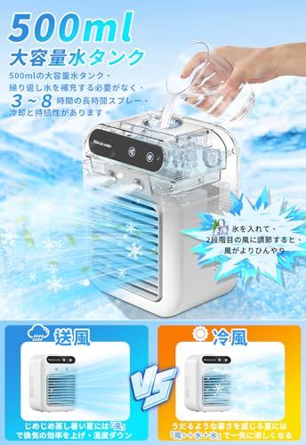 冷風機 冷風扇 強力 【2024新登場!】 MACWE 卓上クーラー 卓上冷風機 強力送風 1台4役 小型 静音 500ML大容量 2段階風量 上下角度調整 冷風扇 2段階噴霧量 氷いれ可能 ミニクーラー 置き型 冷風扇風機 クーラー並み 涼しい冷風機 コンt