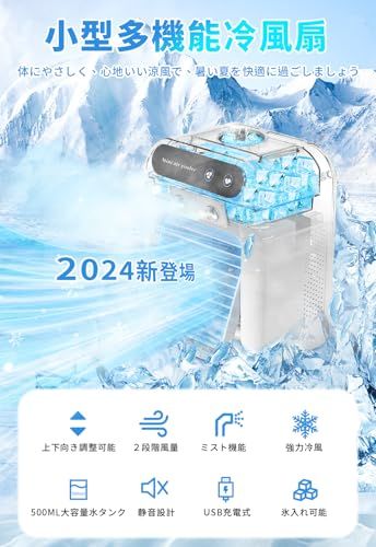 【500ML大容量水タンク?低騒音】500MLの大容量タンクを搭載し、一度の給水で頻繁な給水が不要で長時間使用できます。本体上部に注水口があり、水や氷を簡単に入れることができる超エコ・省エネ暑さ対策グッズです。最大騒音レベルは30dbで、睡眠、読書、仕事の邪魔をせず、いつでも安心して使用できます。