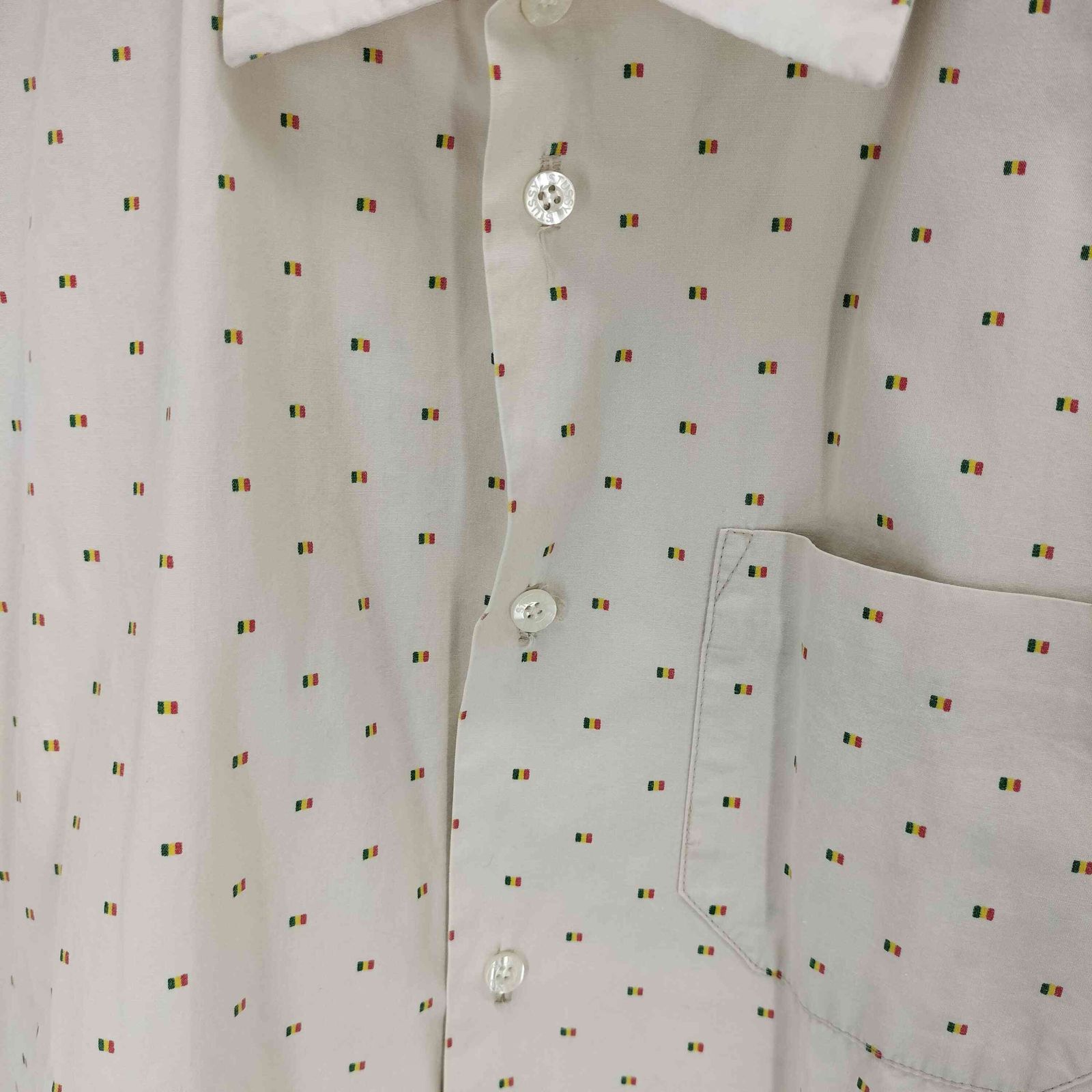 ステューシー Stussy 90S 紺タグ MADE IN USA 総柄 レギュラーカラーS/S シャツ メンズ import:M