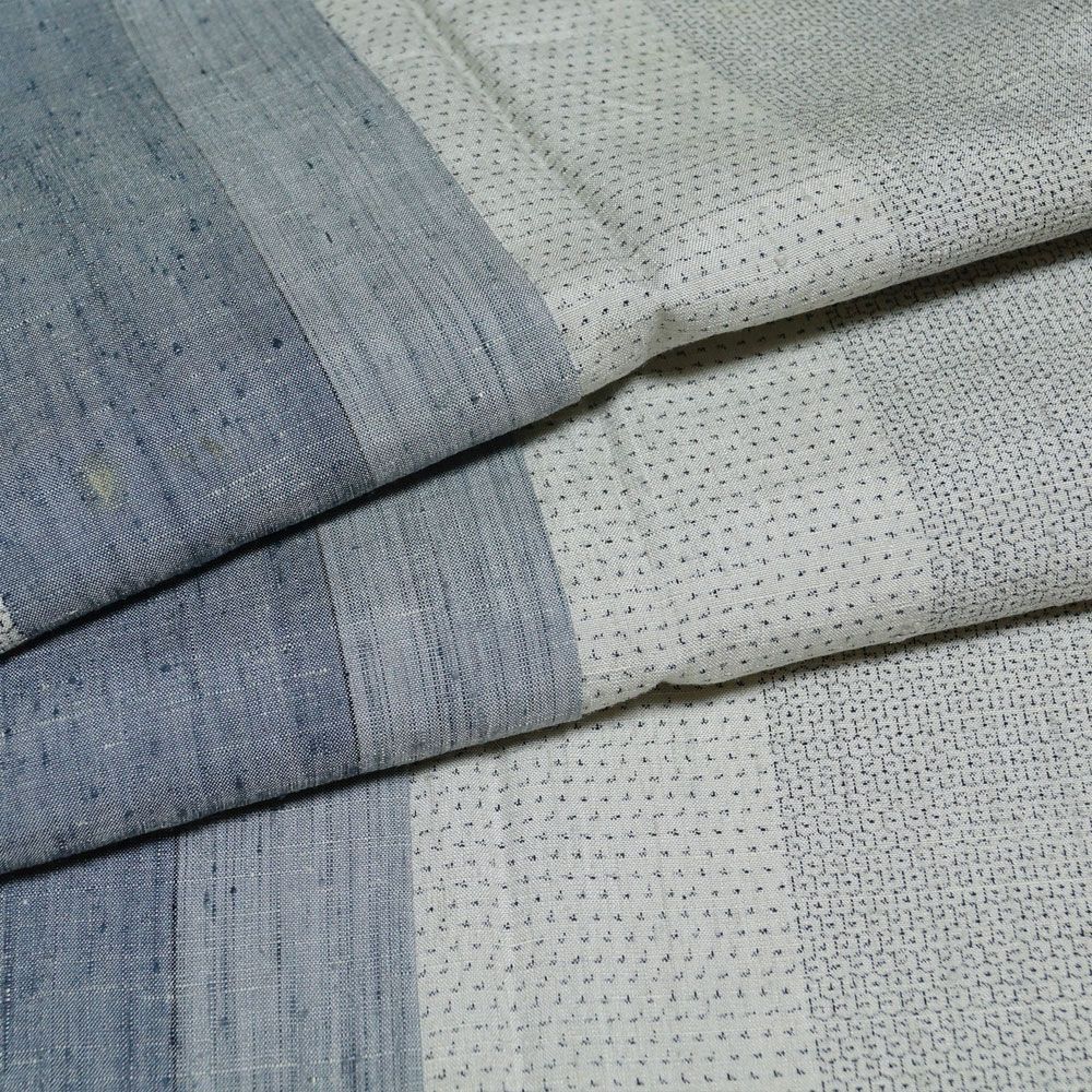 単衣 着物 結城紬 少難有品 織り分けに亀甲、絣模様 乳白色・灰青色系 Sサイズ 紬 【中古 単衣 着物 紬 リサイクル 紬 着物 中古 紬 正絹 リサイクル着物 単衣 紬 つむぎ 紬地 ひとえ 単衣着物 】
