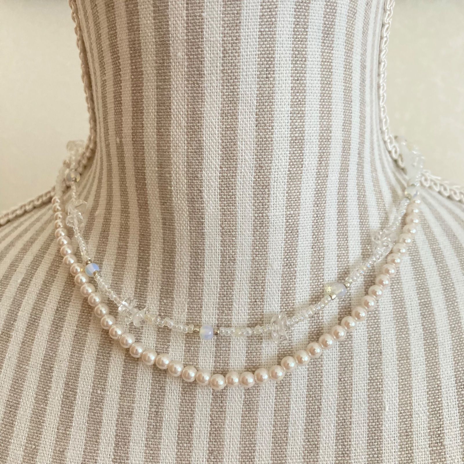 水晶さざれ石と天然石オパールとパールビーズのネックレス/チョーカー
