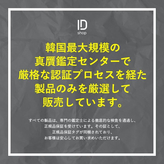 当店で取り扱う全ての商品は、韓国最大規模の真贋鑑定センターで厳格な認証プロセスを経て、正規ルートを通じて輸入された正規品のみを販売しています。正規品に対するこだわりと信頼をもとに、常に最良の選択肢をご提案し、専門の鑑定士による徹底的な検査を通過した製品のみをお届けします。