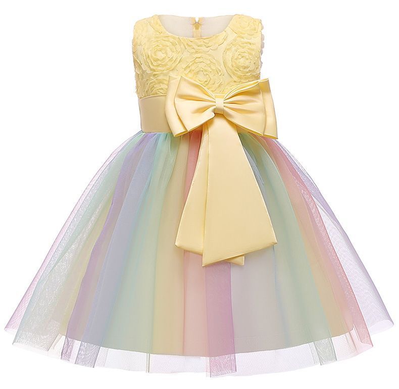 ドレス 子供ロングドレス 発表会 子供 キッズ フォーマルドレス イエロー ブルー パーティードレス 子供 リボンドレス チュールスカート 結婚式 発表会 演奏会 フラワーガール - ピアノ発表会HZQ5129