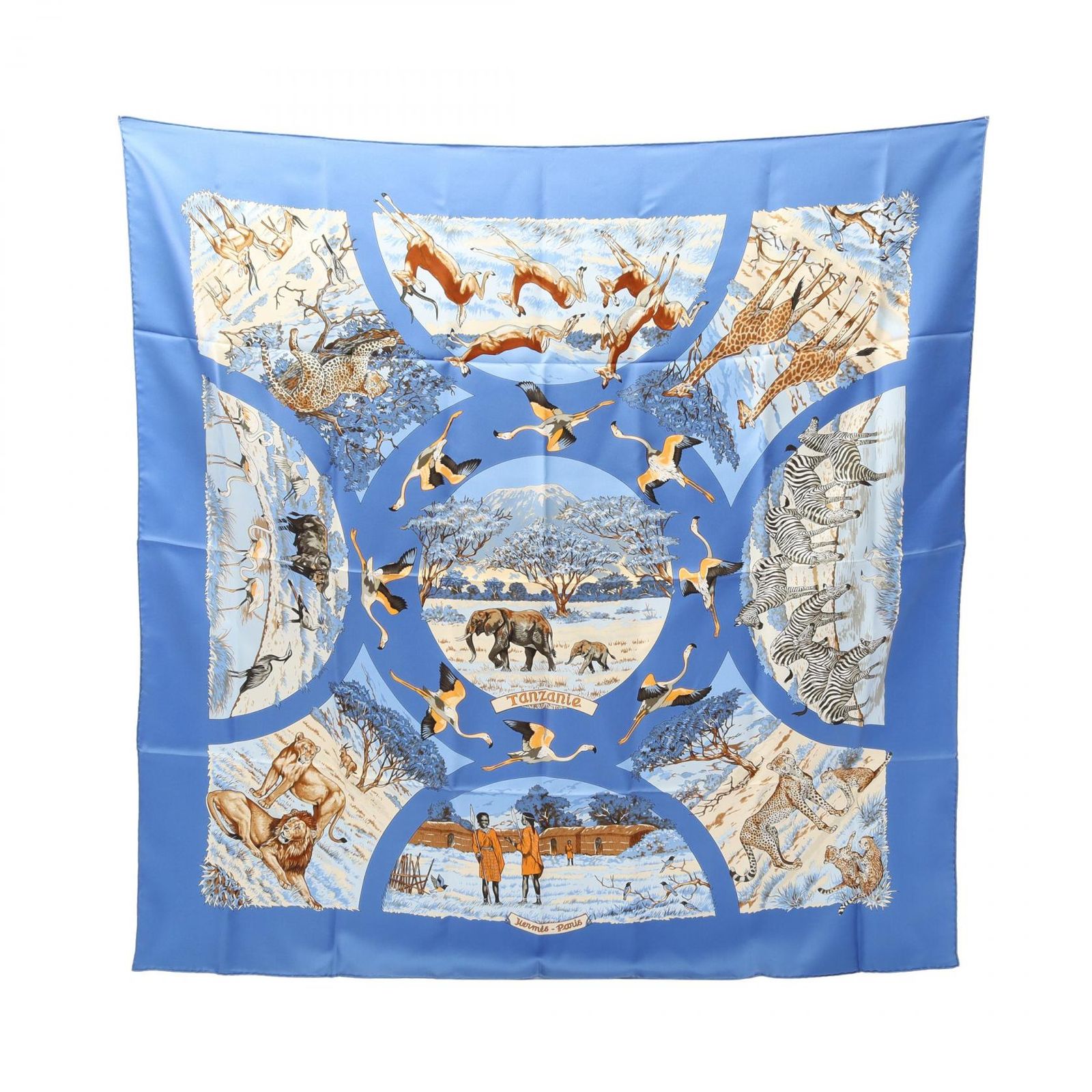 エルメス HERMES スカーフ カレ90 TANZANIE ブルー系 シルク カレ90 レディース Used A