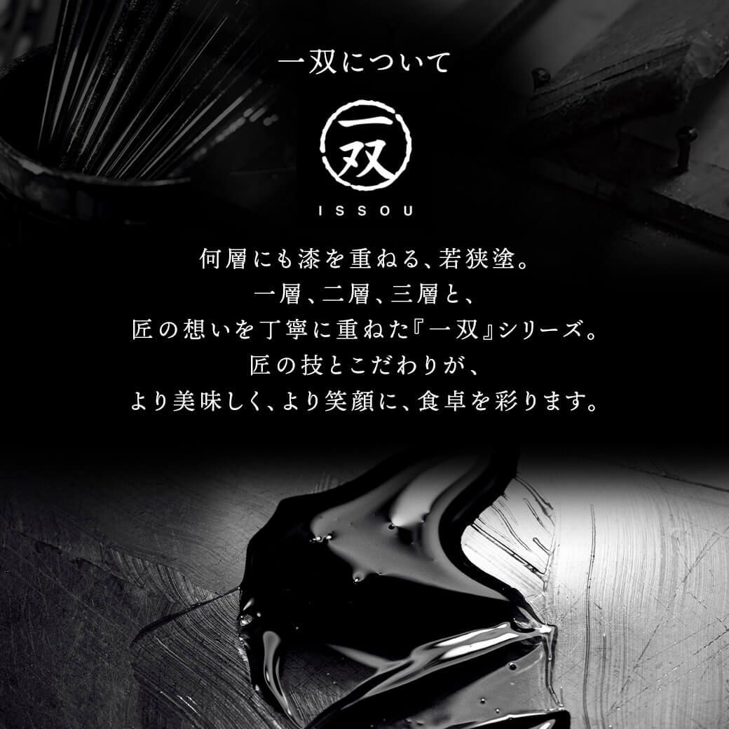 若狭塗箸の老舗メーカーの「イシダ」のハイエンドブランド『一双』。何層にも漆を重ねる若狭塗は、400年の歴史と未だ進化を続ける匠の技。一層、二層、三層と、匠の想いを丁寧に重ねた『一双』ブランドは、本物の若狭塗箸の風格と品質を持ち合わせています。