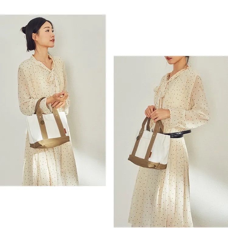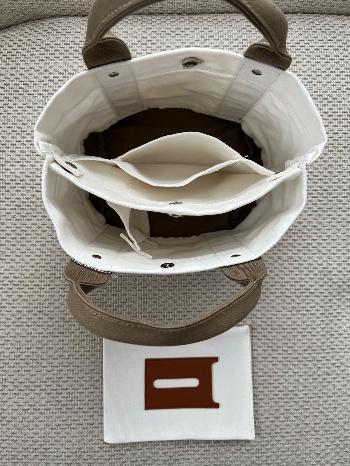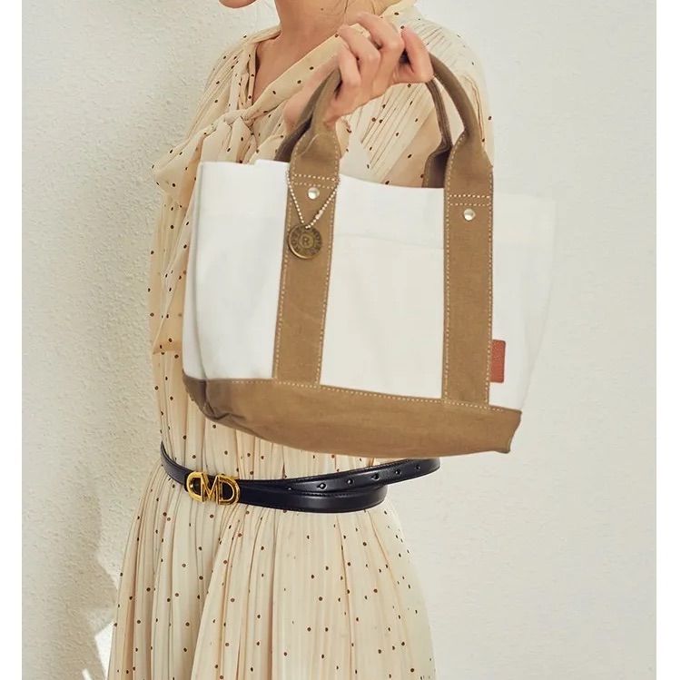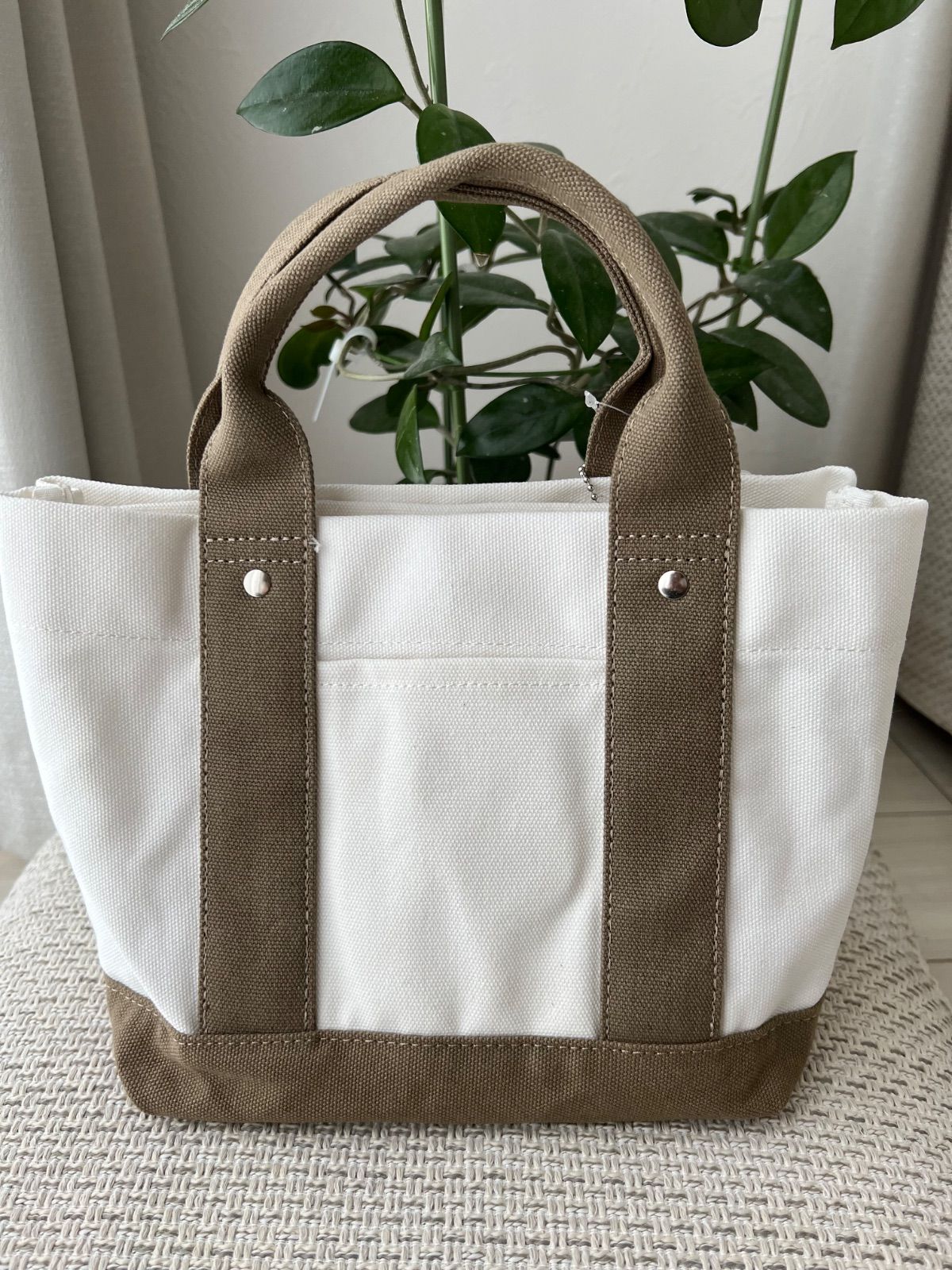 ミニトートバッグ 帆布 トートバッグ キャンバス 3つ仕切り ホウイトxベージュ