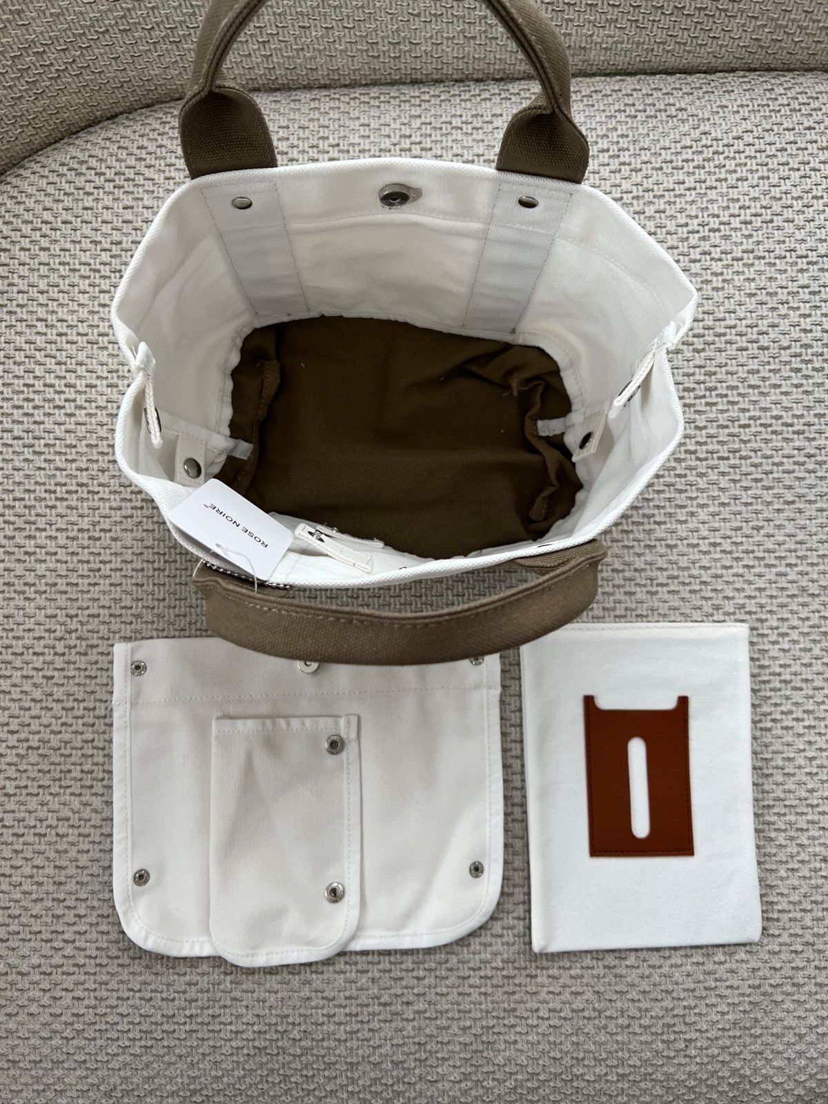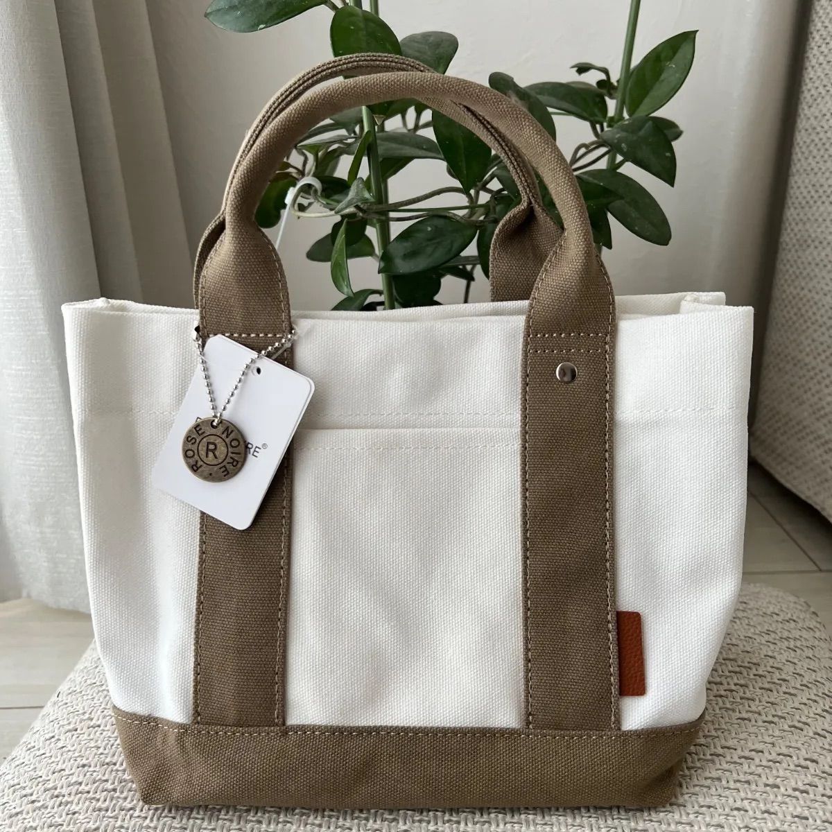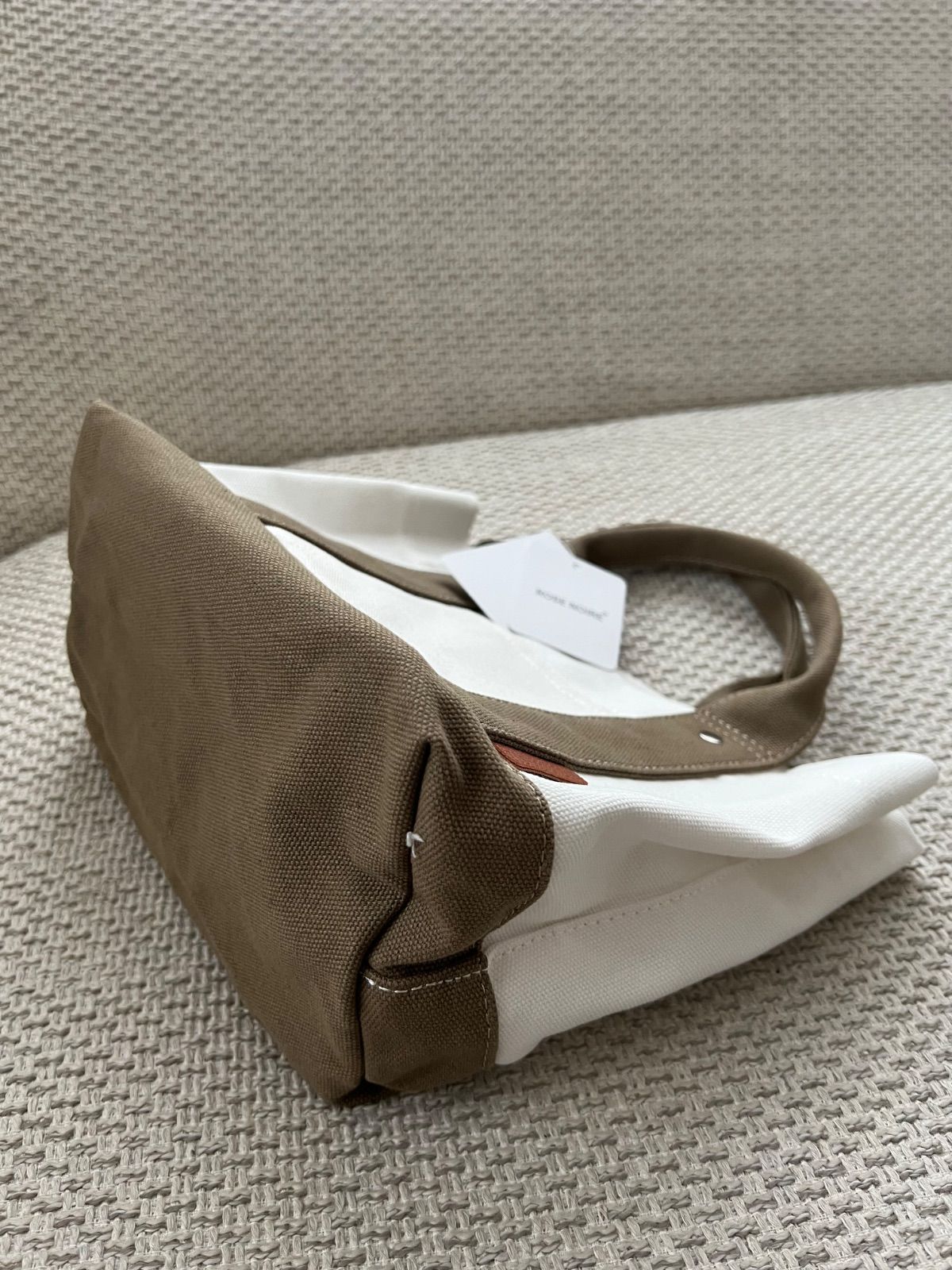 ミニトートバッグ 帆布 トートバッグ キャンバス 3つ仕切り ホウイトxベージュ