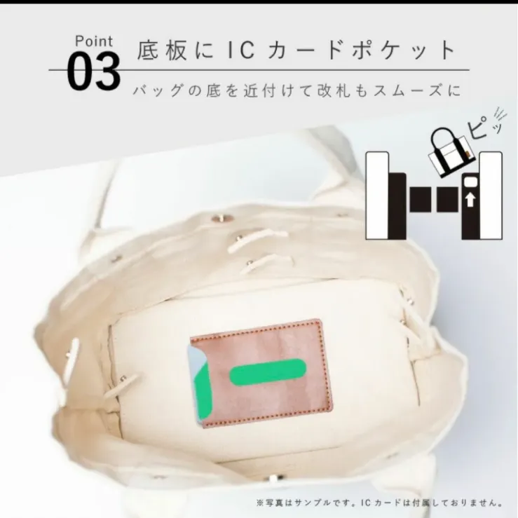 * 【バックの底板にICカードポケットが差し込める】:バックの底を改札機にかざすだけでOK!改札機に触れなくても良いので衛生的に◎この便利さを覚えるとほかのバックに戻れません!