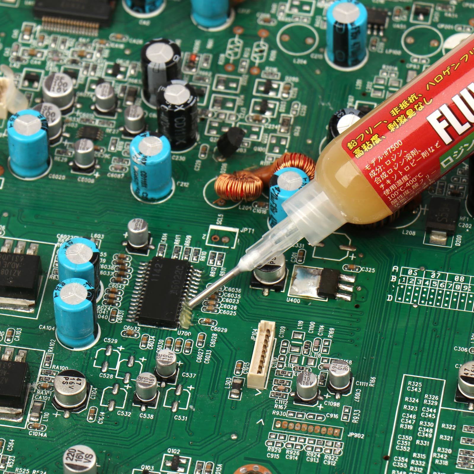 #7500フラックスの最も顕著な特徴は、はんだの表面とはんだ付けされるベース材料から酸化物を除去し、金属表面が必要な清浄度に達することです。フラックスは、はんだ付け中の表面の再酸化を防ぎ、はんだの表面張力を減らし、はんだ付け性能を向上させます。